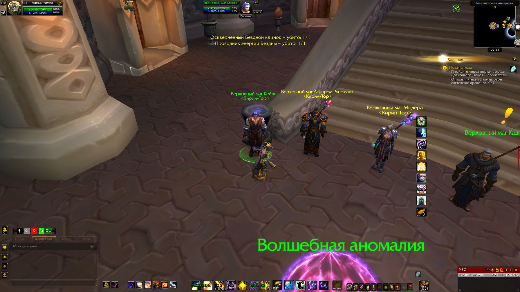 | Steps To Reproduce | Берем задание. -Проводник энергии Бездны 1/1 убито (этого быть не должно) -Оскверненный Бездной клинок 1/1 убито (этого быть не должно) -Воспользуйтесь даларанским порталом в храм Драконьего Покоя (выполняется) -Отправляйтесь в Лазуритовое святилище драконов (выполняется) Появляется второй этап задания. -Странный портал (выполняется) -Проводник энергии Бездны (не засчитывают) -Оскверненный Бездной клинок (не засчитывают) -Найдено зацепок 1/3 Задание сдать нельзя. | ||||