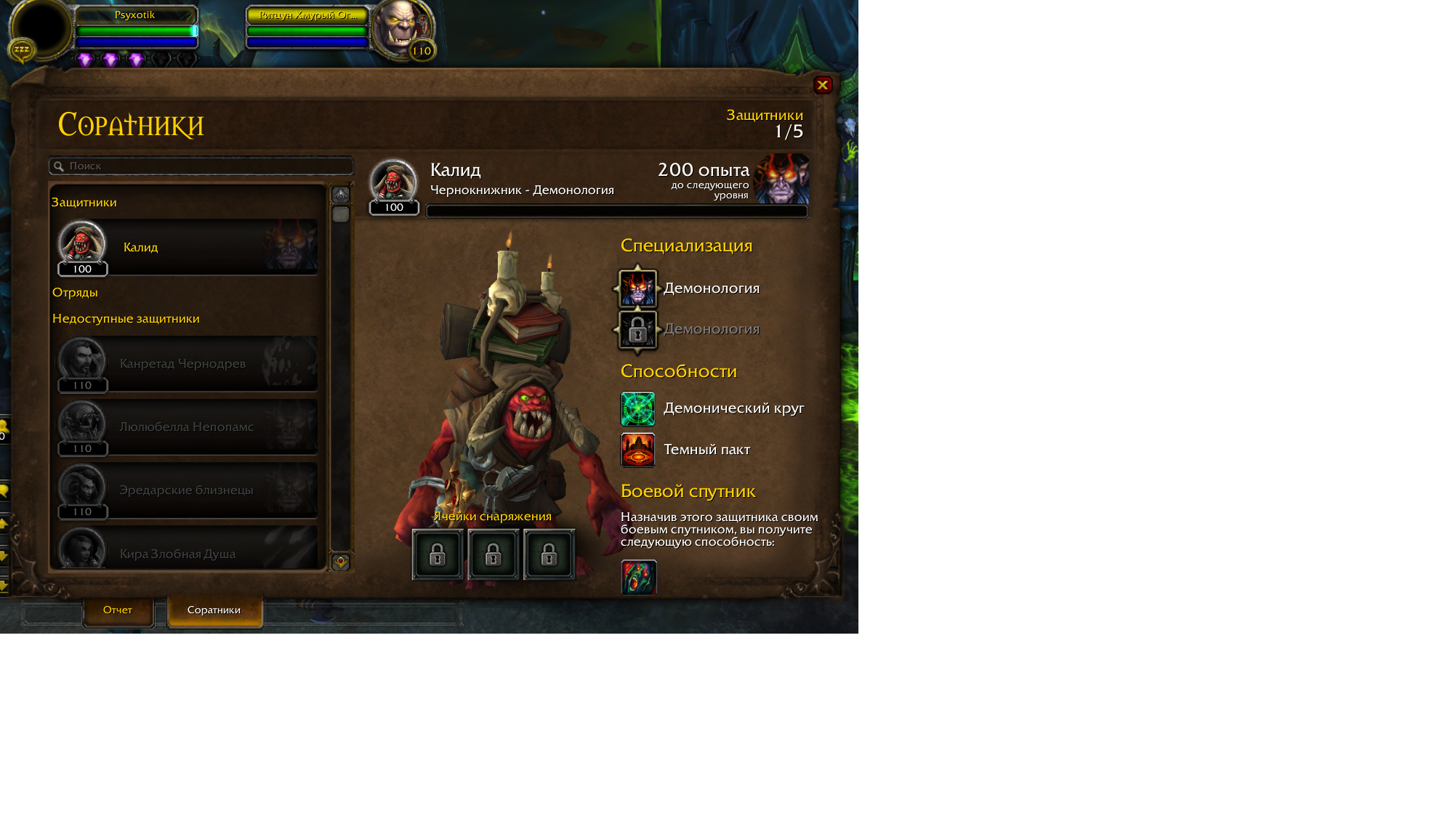 Здравствуйте, попробуйте подойти в Даларане к О-Ши и выбрать пункт про "явитесь, защитники". Скорее всего у вас он уже завербован |