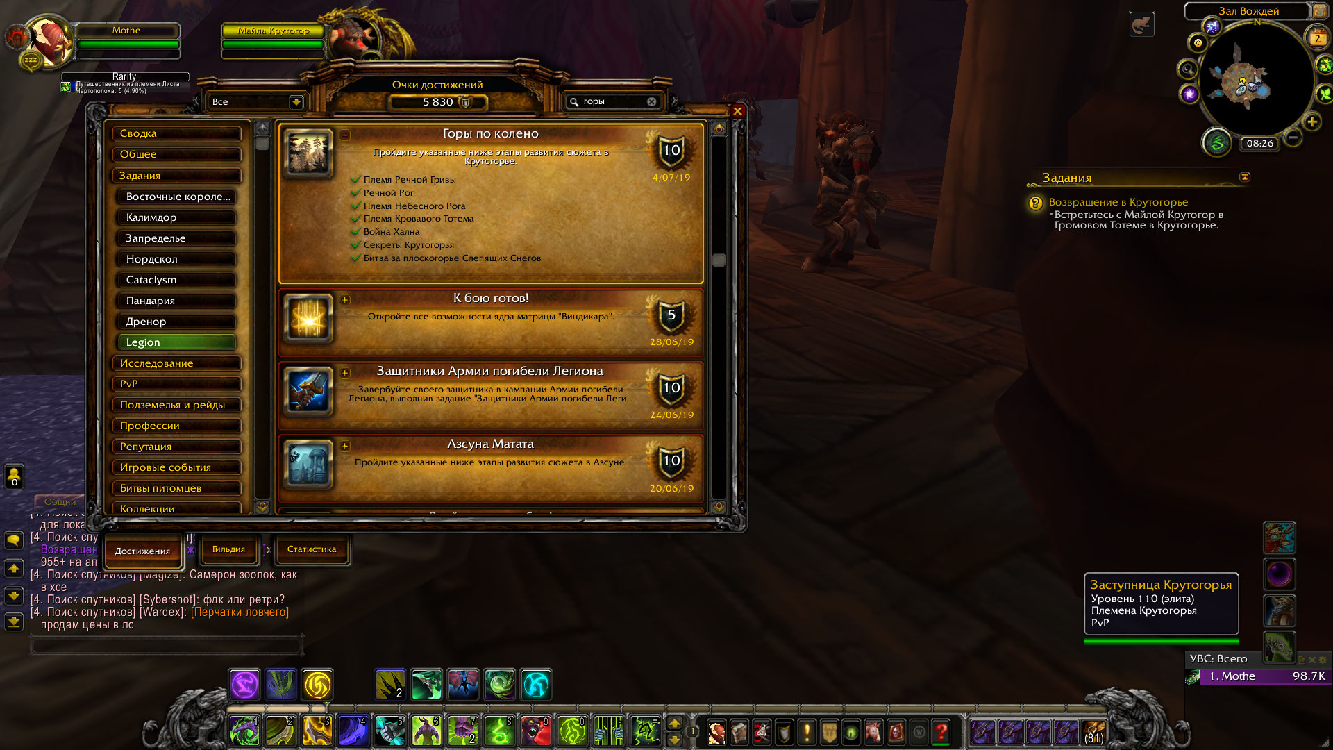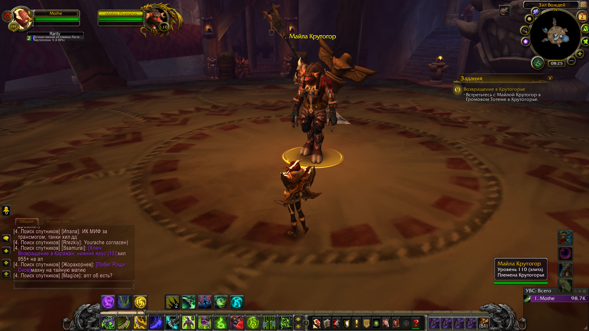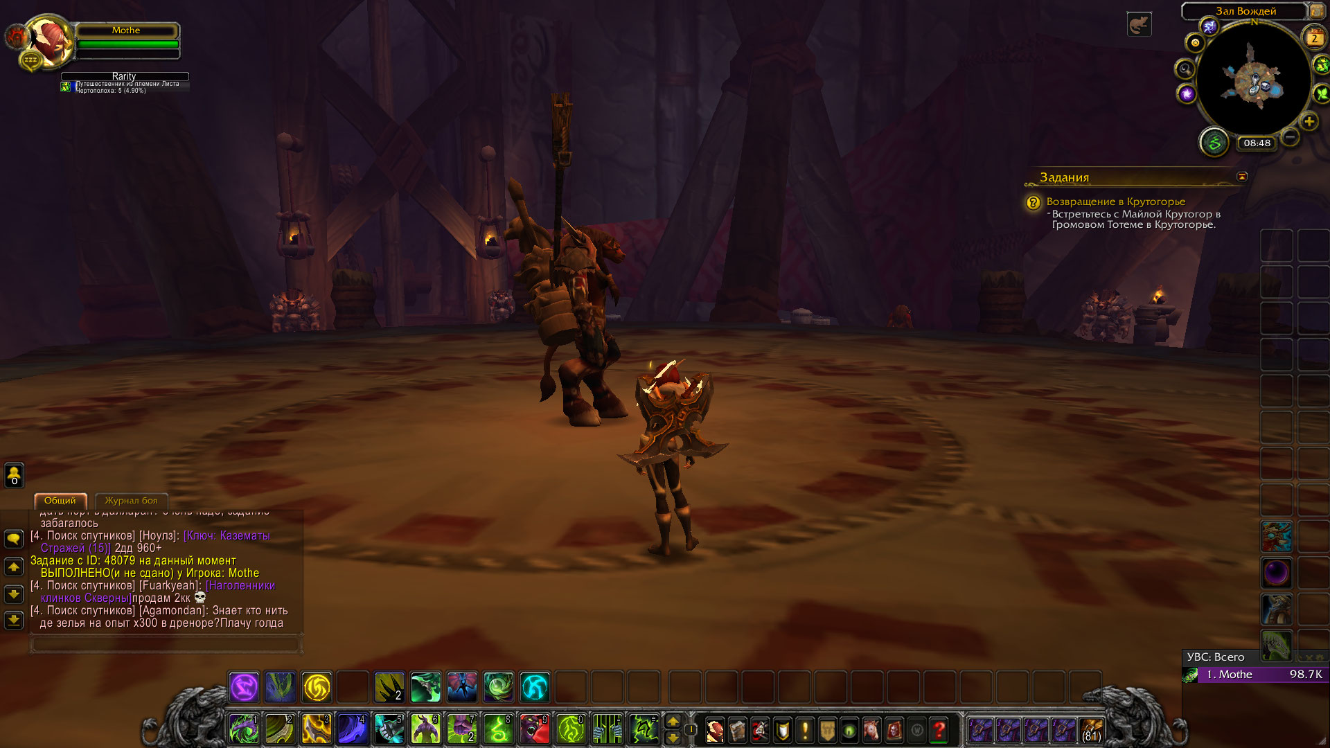 | Description | Не могу сдать квест Майле Крутогор. С Майлой, что стоит в середине Громового Тотема нельзя взаимодействовать (пару дней назад брала кв не связанный с моей темой, все было нормально). Смотрела гайд по заданию, Майла которой нужно сдать кв должна стоять за большим тотемом и там же следующее задание "Темные Истории" от Духостранника Серое Небо должно быть, но там нет никаких нпс. Этот кв из цепочки на Тауренов Крутогорья, достижение и превознесение есть. | ||||