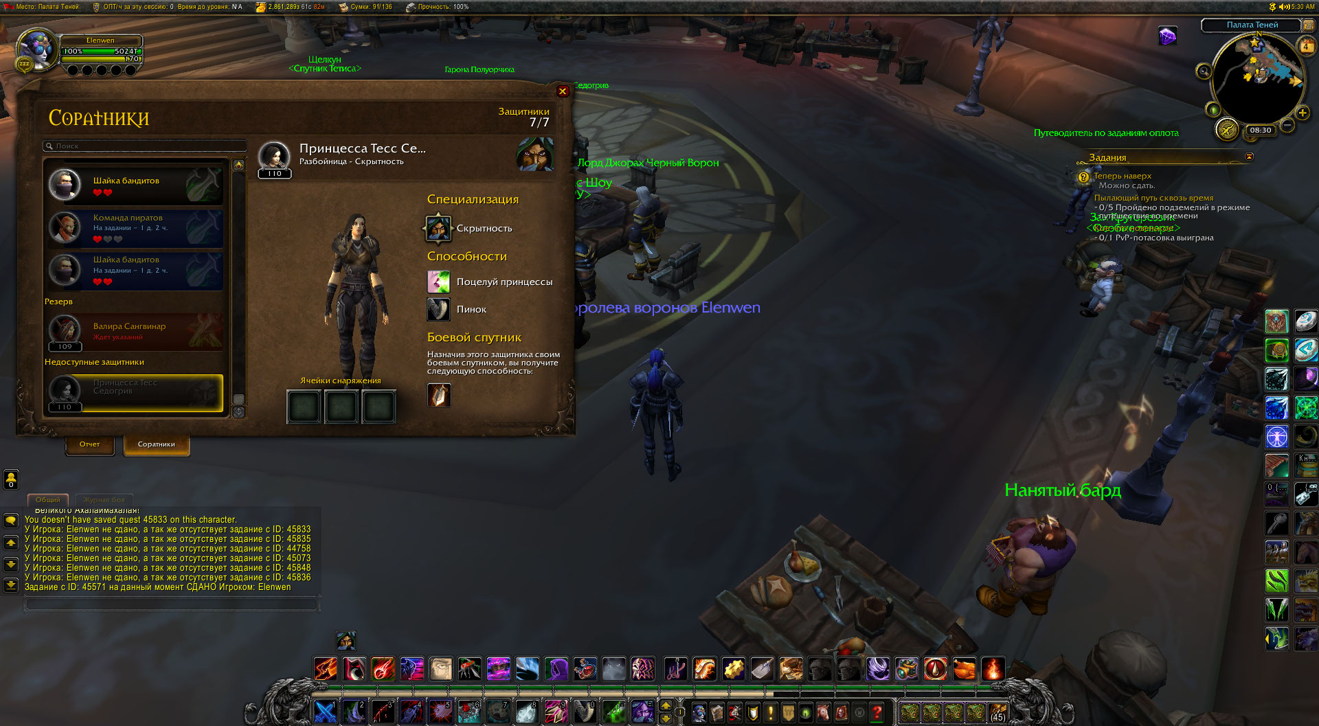 | Additional Information | На скриншоте изображено отсутствие защитника оплота, отсутствие задания как у https://ru.wowhead.com/npc=101513/lord-jorach-ravenholdt так и в путеводителе по заданиям оплота, отсутствие выполненных заданий цепочки, завершённый квест https://ru.wowhead.com/quest=45571/a-bit-of-espionage и выполненное, но не завершённое задание https://ru.wowhead.com/quest=45573/rise-up | ||||