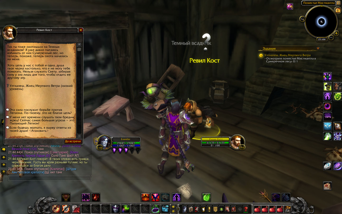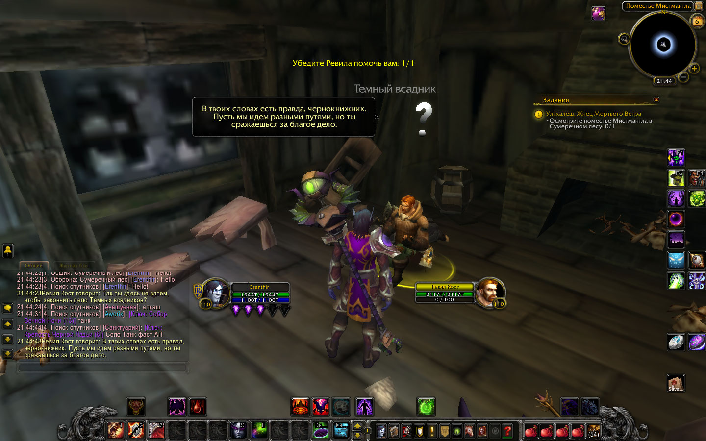 - Убедите Ревила помочь вам (диалог работает, но задание сдать нельзя) Но не срабатывает: - Осмотрите поместье Мистмантла в Сумеречном лесу |