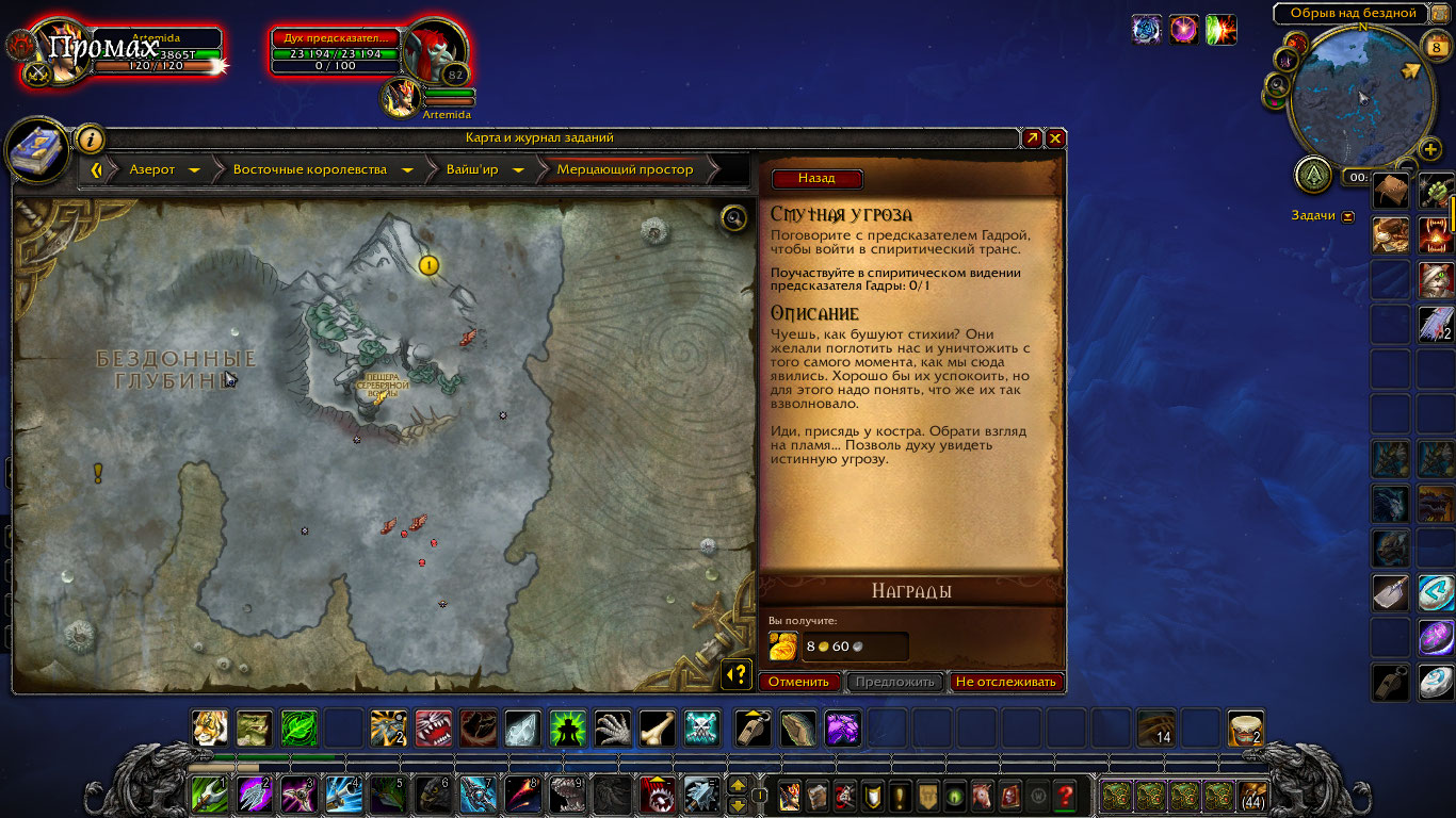 | Description | https://ru.wowhead.com/quest=25334/the-looming-threat#comments:id=3148326 взяла квест,поговорила с нпс чтобы начать видение-закинуло к водовороту где меня оглушило,и нельзя ничего сделать,пишет "вы оглушены" и дух гадры стоит и бьёт меня. | ||||