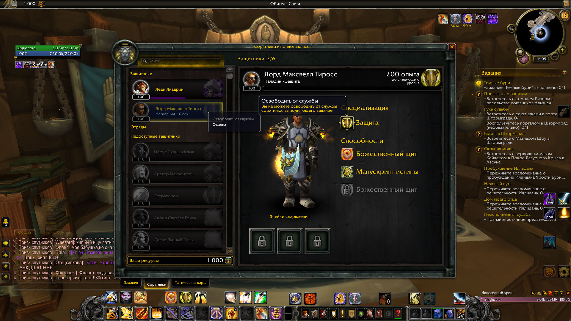 | Description | В классовом оплоте паладинов при выполнении квеста "Темные бури" забагался соратник, он как бы находится на задании, но в задания как такового нет. Отправить другого соратника невозможно, требуется именно Лорд Максвелл,поэтому невозможно продолжить классовую цепочку квестов и вобще даже получить другие артефактные оружия. | ||||