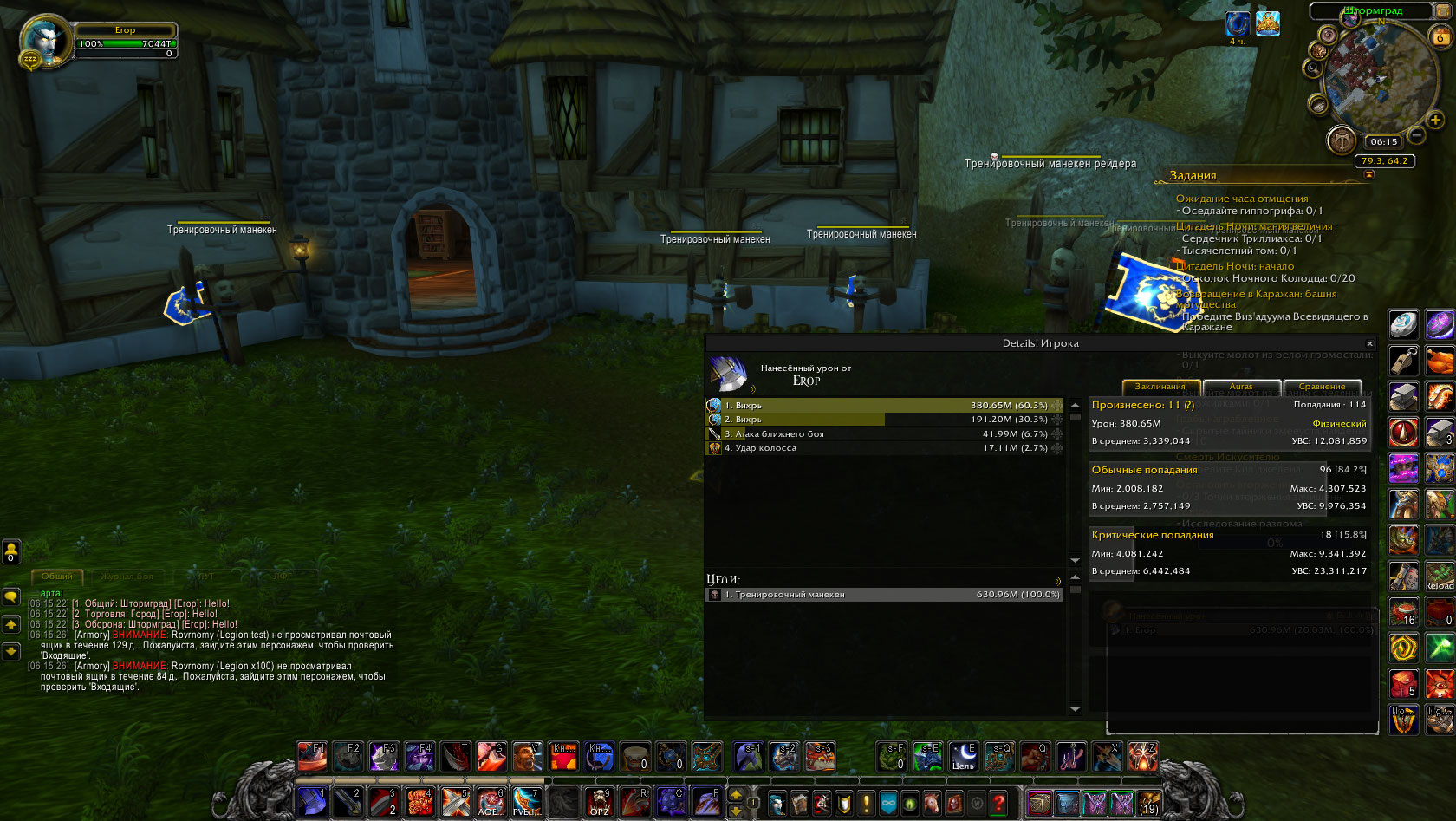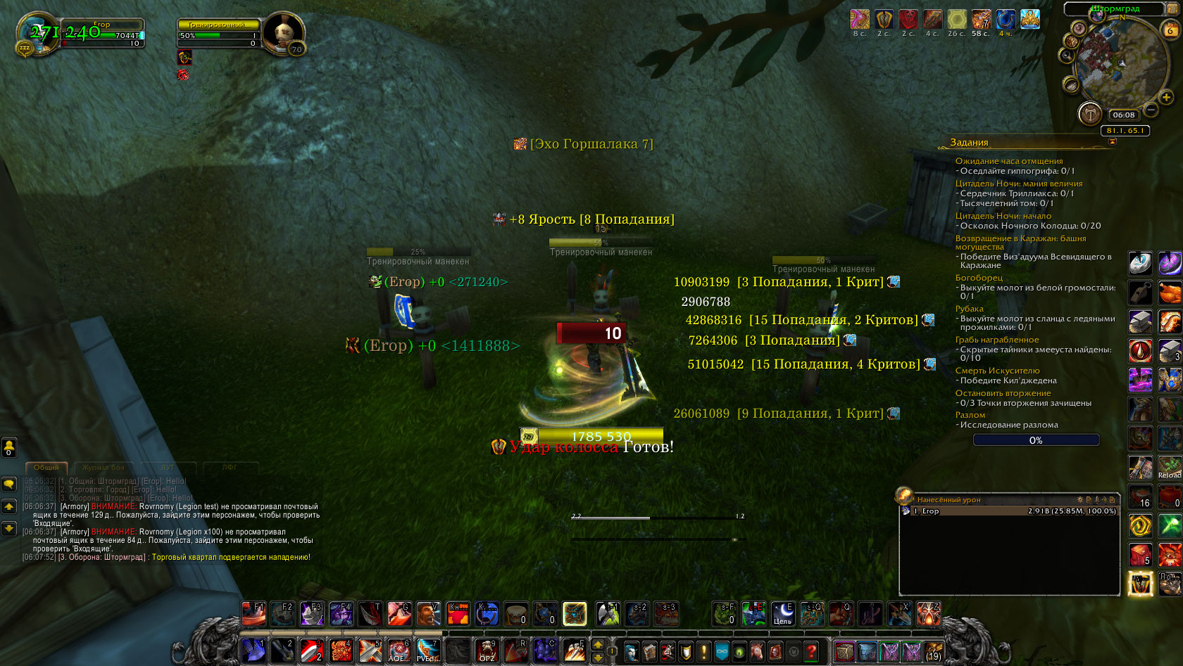 | Description | https://ru.wowhead.com/item=137087 при быстром применении способности Вихрь https://ru.wowhead.com/spell=1680 предыдущие атаки отменяются на примере из видео видно,что при 5-ти кратном использовании Вихря против 3-х противников суммарное кол-во попаданий должно составлять 90 (60+30),но если увеличить скорость произнесения способности то попадания начинают теряться,видимо,из-за того,что одна атака прерывает другую, на 2 видео c более быстрым произнесением способности после 5 раз использования вихря кол-во попаданий уже не 90 а 72 (48+24) *(3 противника нужны для того чтобы бонус от легендарного предмета начал работать) | ||||