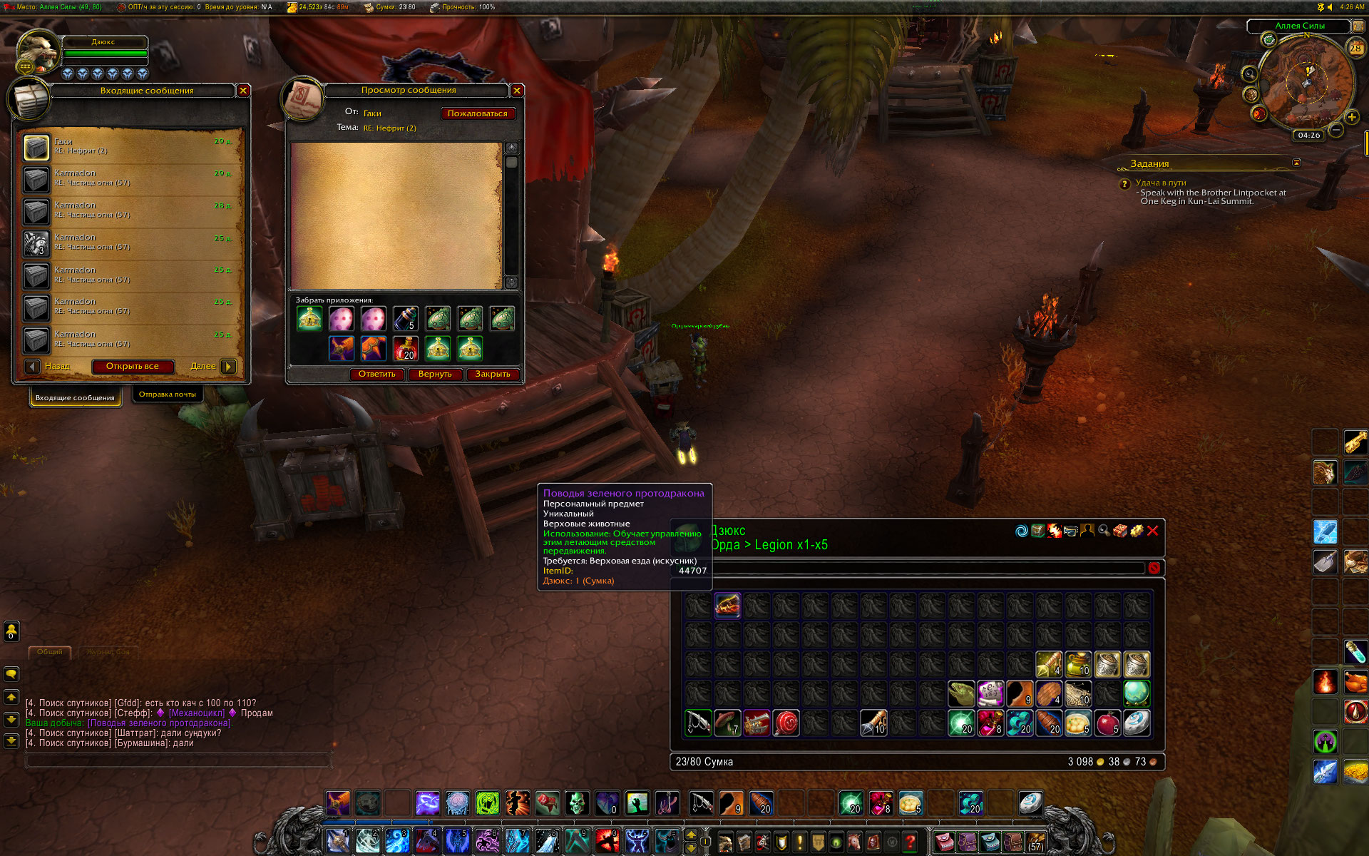 >> подарок на ярмарке Две недели прошло, а мы так и не увидели скриншот от Вашего друга с доказательством . И пока скриншота нет - слова Ваши или Вашего друга №;?%:%*. В качестве примера добавлю скриншот от себя - доказательство, что зеленого протодрака можно получить в Легионе. В чате видно, что дракон получен в виде добычи :) |