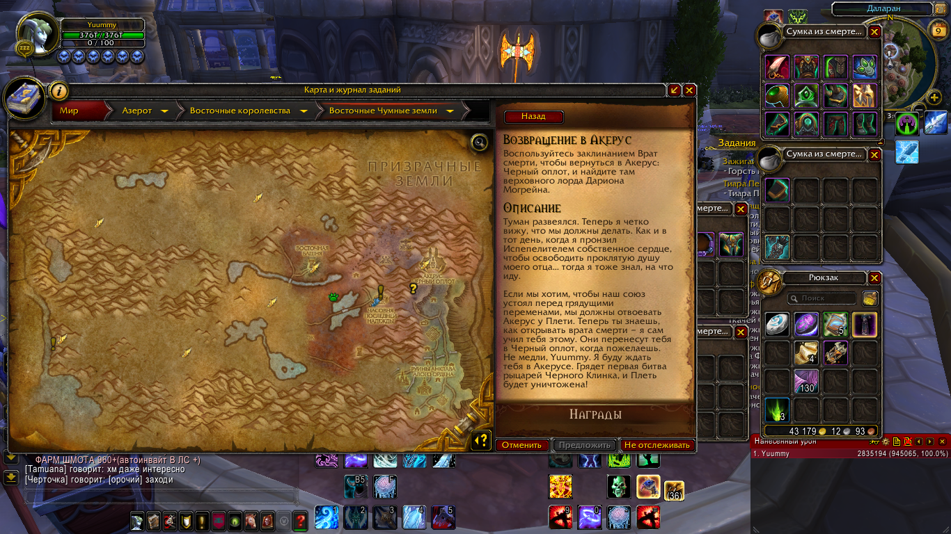 Попросил засчитать квесты на дк. Сделал так как тут писали. мне пришел вот такой ответ. спасибо за помошь! Создал нового персонажа, старого удалил. работаете вы на 5 балов ( из 1000) |