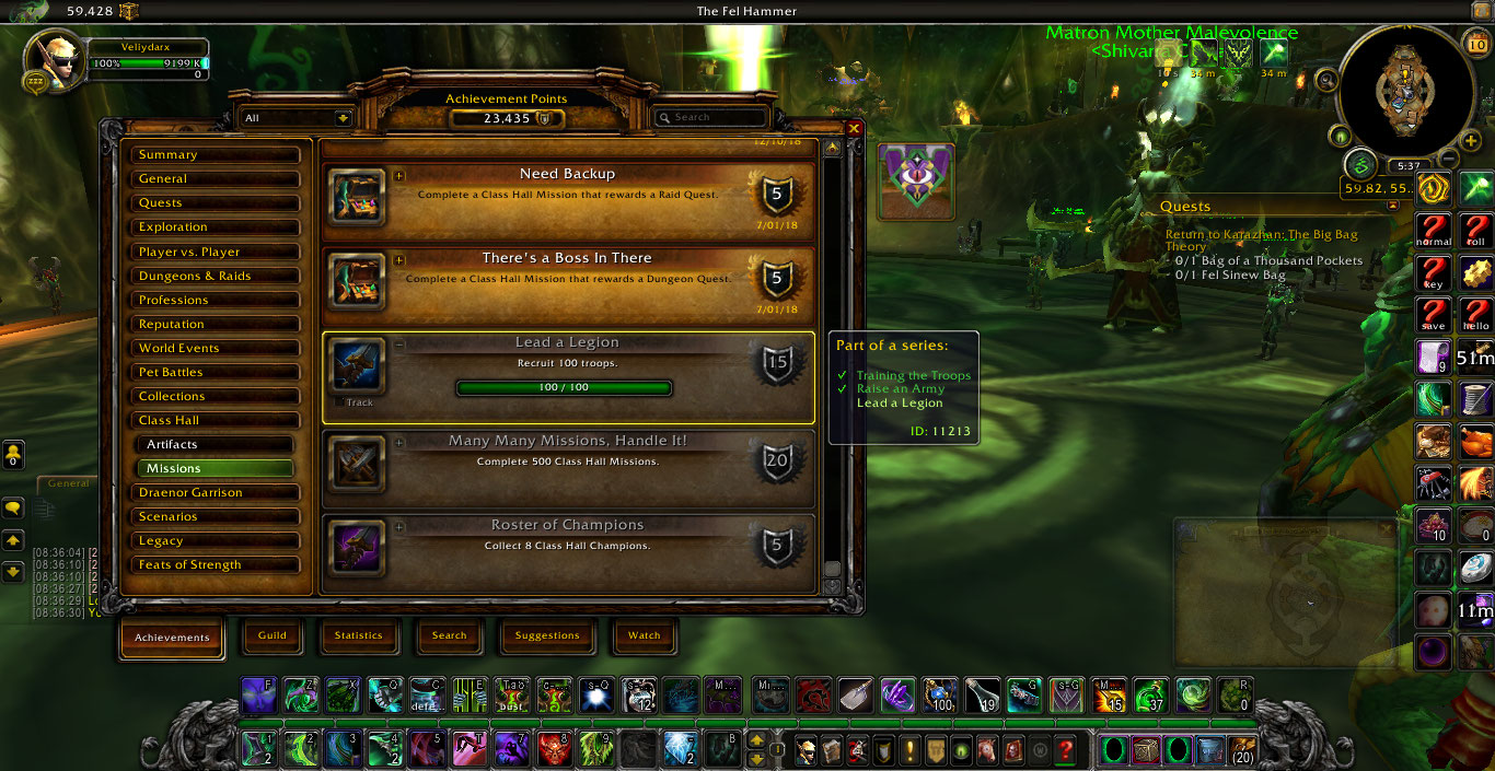 | Description | Ачив https://ru.wowhead.com/achievement=11213/командующий-легионом не засчитывается при выполнении критериев 100/100 (в npc с исправлением не засчитывает) | ||||