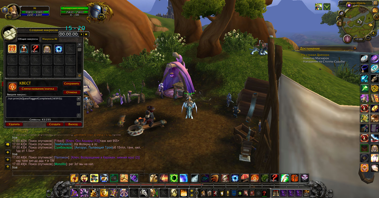 | Description | Квест в Дреноре https://ru.wowhead.com/quest=35062/ Предпоследний для ачивки, нет возможности взять у https://ru.wowhead.com/npc=81039/ Предыдущие квесты все имеют статус True Скриншоты с Ирель без квестов и прогрессом ачивки во вложении. | ||||