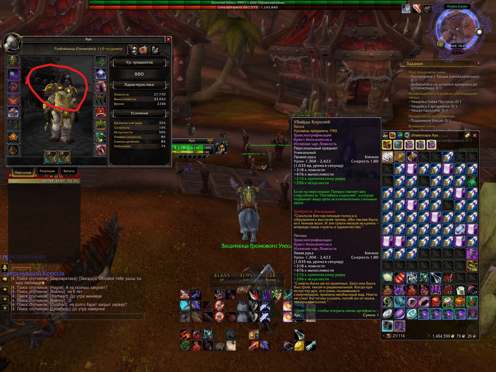 Dracarys 1) с хумонгриса падают плечи которые являются Recolor версией сетам монаха. для упоротых юзеров открываем https://www.wowhead.com/npc=108879/humongris находим в луте https://www.wowhead.com/item=141445/mantle-of-the-aspiring-spellgiant и видим что эти сраные плечи, относятся к следующей группе This item is part of the following transmog set: Vestments of Enveloped Dissonance Vestments of Enveloped Dissonance (Normal Lookalike) и единственный вариант плечей именно с этой моделью и желтой текстурой это https://www.wowhead.com/item=138337/pauldrons-of-enveloped-dissonance&bonus=3520:1466 которые игрок может получить в LFR режиме за монаха, а значит играя всратым разбойником ты их затрансить не мог. то что ты раньше получал именно эту расцветку багом не имеет значения. 2) согласно правилам НИКТО НИЧЕГО ТЕБЕ НЕ ДОБАВИТ сходи правила сервера почитай http://forum.uwow.biz/topic/253843-obschie-pravila-polzovatelej-i-administratcii-p/ Глава 2: Полномочия и обязанности Администрации. Администрация не производит возврат персонажей, вещей, денег и каких либо материалов, используемых в игре, утерянных в результате незнания правил игры или непредвиденных сбоев в работе сервера. Восстановление персонажей возможно только через использование соответствующих донат-вендоров. |