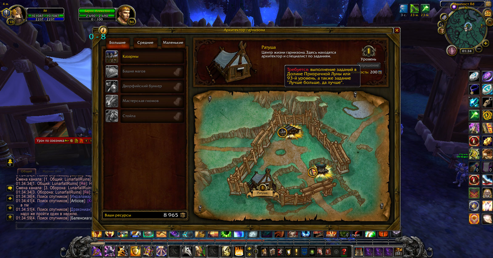 | Description | Невозможно сделать ачивку https://ru.wowhead.com/achievement=8845/ Последний критерий для полётов на Дреноре https://ru.wowhead.com/achievement=9833/ Первый критерий ачивки на локации "Обустройство крепости" нельзя выполнить так как: 1) нужно выполнить цепочку квестов https://ru.wowhead.com/quest=33075/ но её нельзя взять, так как не пройдены предыдущие квесты. 2) нужно выполнить квест https://ru.wowhead.com/quest=34587/ на постройку казарм, однако, нельзя завершить ни одну постройку в гарнизоне 3) нужно выполнить квест https://ru.wowhead.com/quest=34646/ и отправить её на задание через командирский стол, но и здесь нет квестов для https://ru.wowhead.com/quest=34692/ По всем критериям уже были созданы багрепорты (про баги гарнизона, невозможность построек, нерабочий стол заданий...) Я в курсе, что гарнизон забаган, но дайте возможность хотя бы квесты доделать. Можно же добавить автокомплит. | ||||