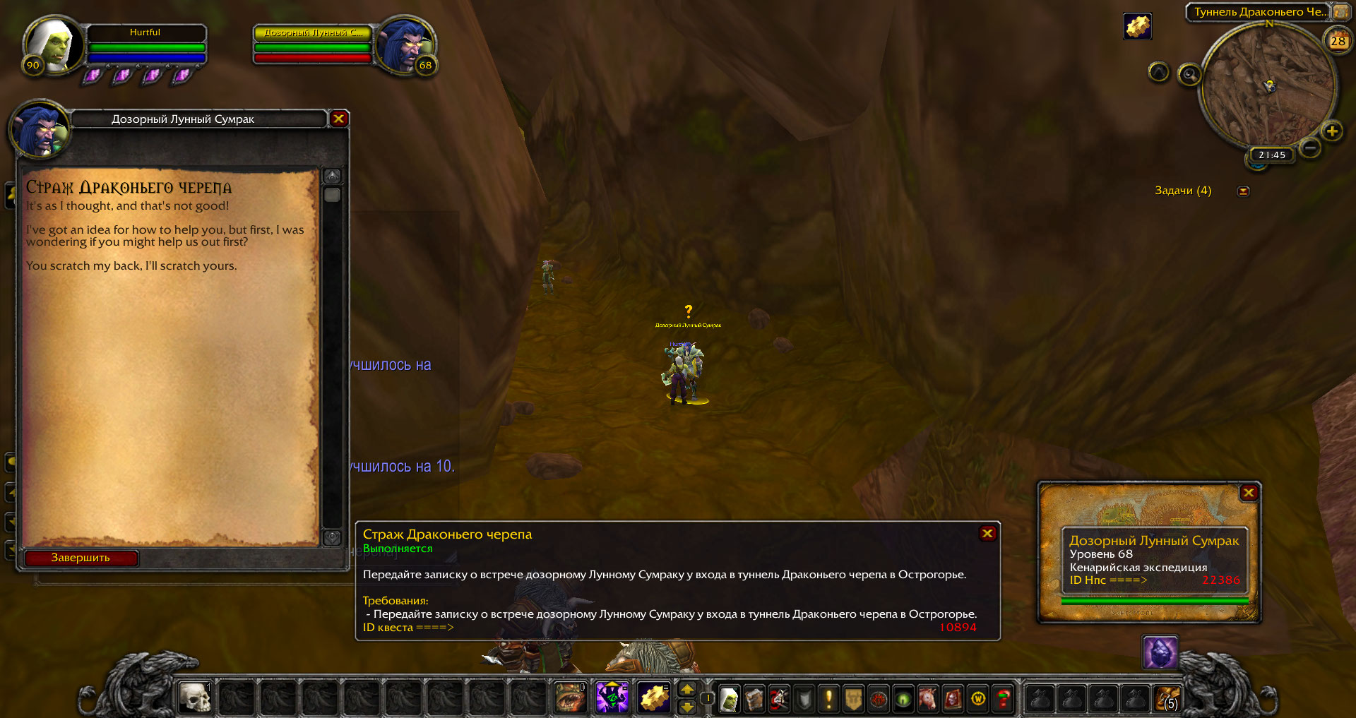 | 2019-11-23 14:52 | Hurtful | Summary | Страж Драконьего черепа (quest=10717) => Страж Драконьего черепа (quest=10894) |