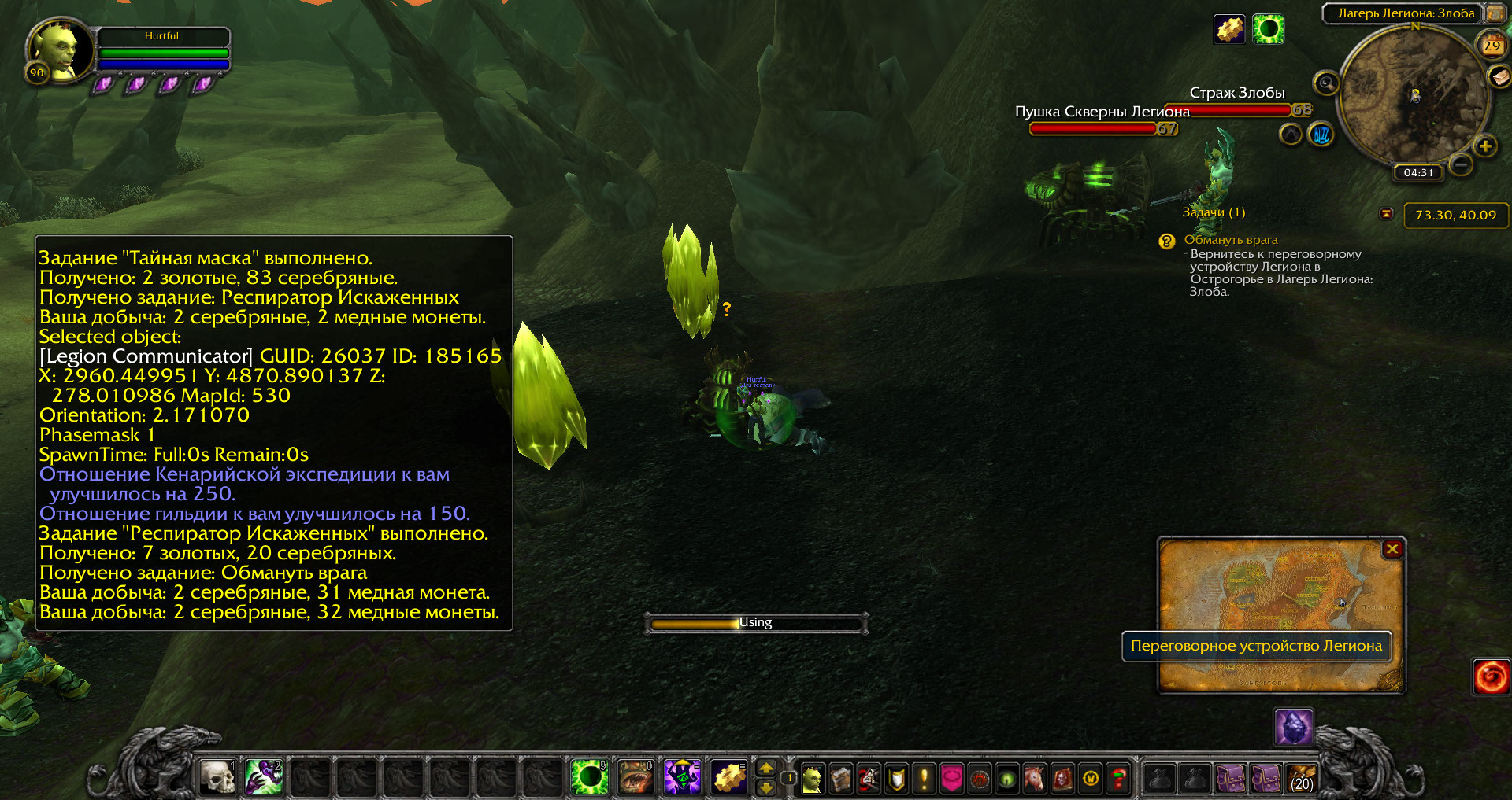 | Description | 1) не переведено взаимодействие с https://ru.wowhead.com/object=185165; 2) для взаимодействия с https://ru.wowhead.com/object=185165 обязательно требуется https://ru.wowhead.com/item=31366. У нас же это не является обязательным. | ||||