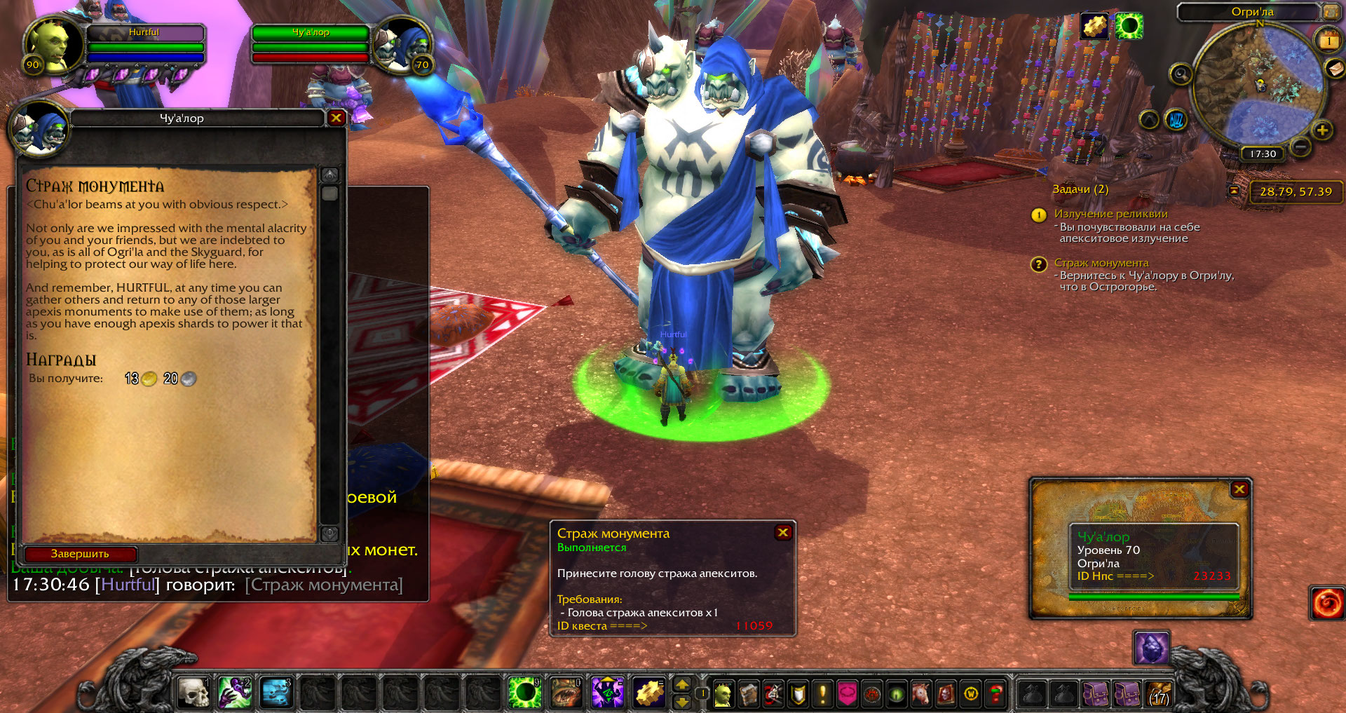 | 2019-11-23 14:59 | Hurtful | Summary | Страж монумента (quest=110590 => Страж монумента (quest=11059) |