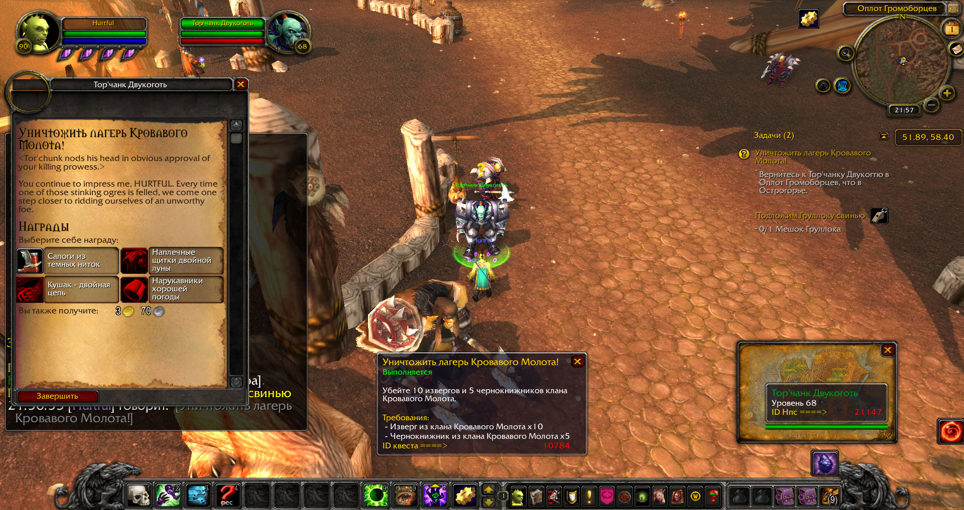 | Summary | 0006263: Уничтожить лагерь Кровавого Молота! (quest=10784) | ||||
