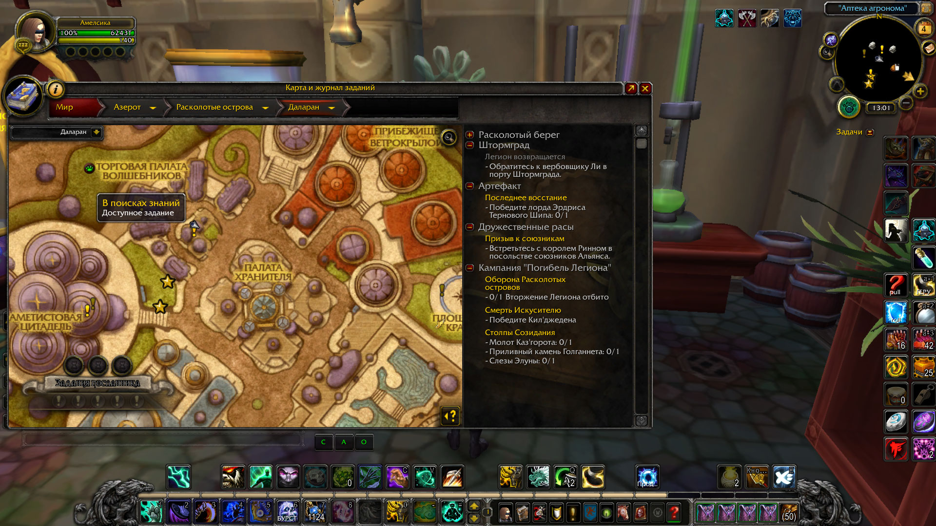 | Description | Делал цепочку алхимии прошел квест https://ru.wowhead.com/quest=39341/казематы-стражей-желчь-демона, дали https://ru.wowhead.com/quest=39566/в-поисках-знаний но его у НПС нету а на карте показано что есть скрины прилогаю. | ||||