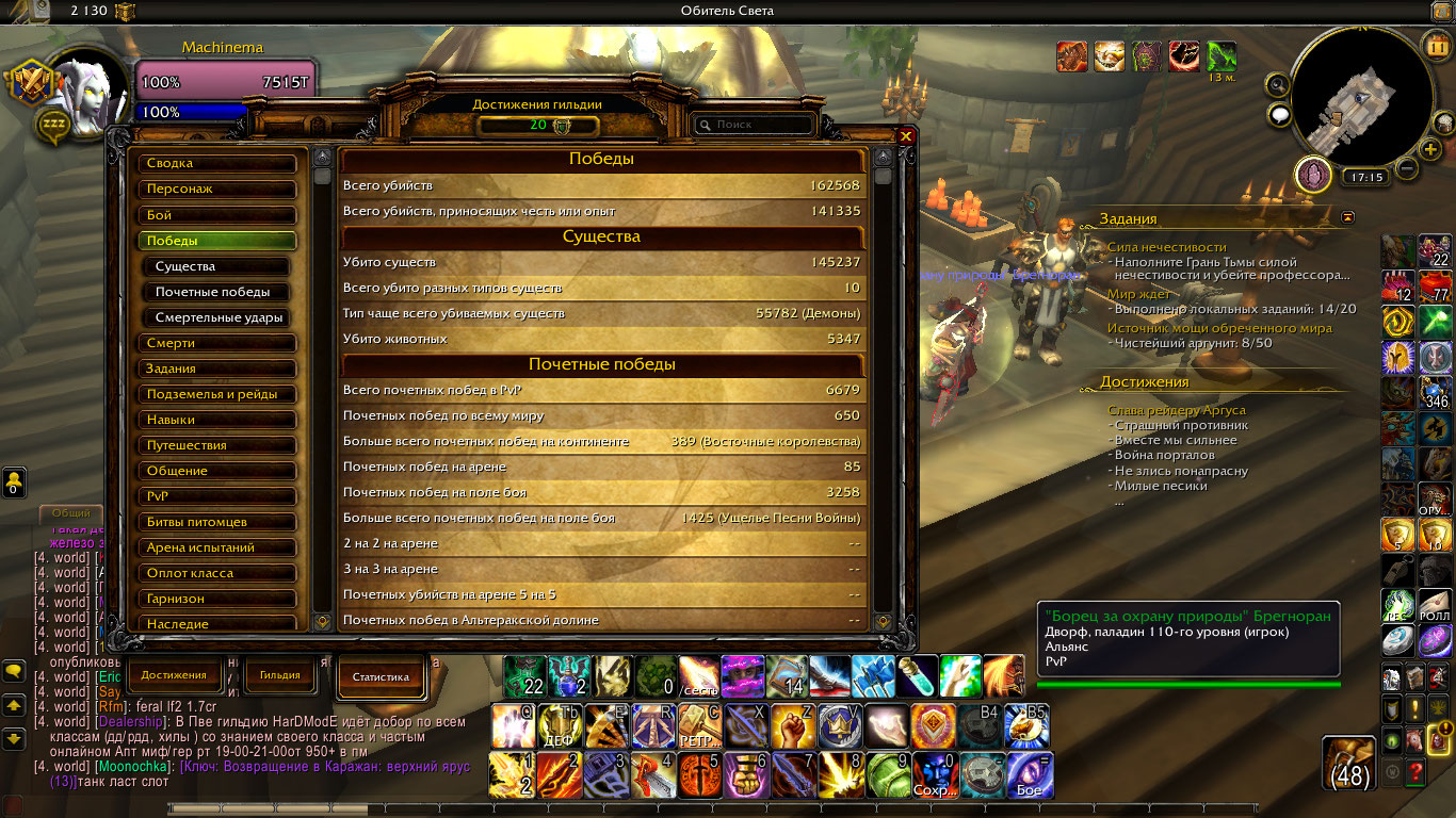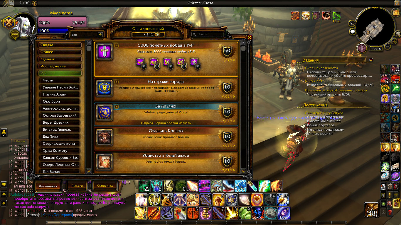 Narkop и что? я могу зайти с твинка 10 уровня и заскринить тебе ачивку с 50к почетных побед, эти достижения шарятся на всех чаров на учетке и это не означает что конкретным паладином ты убил N-количество человек пОСЛЕ ПОЛУЧЕНИЯ СКРЫТОГО ОБЛИКА НА НУЖНЫЙ СПЕК. |