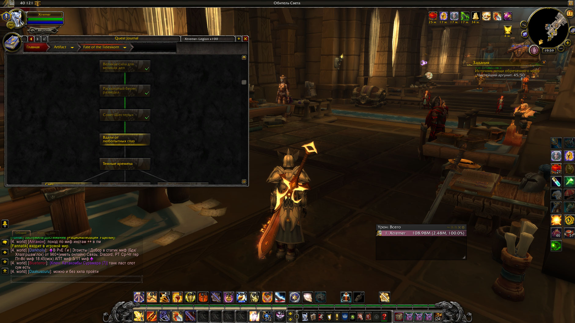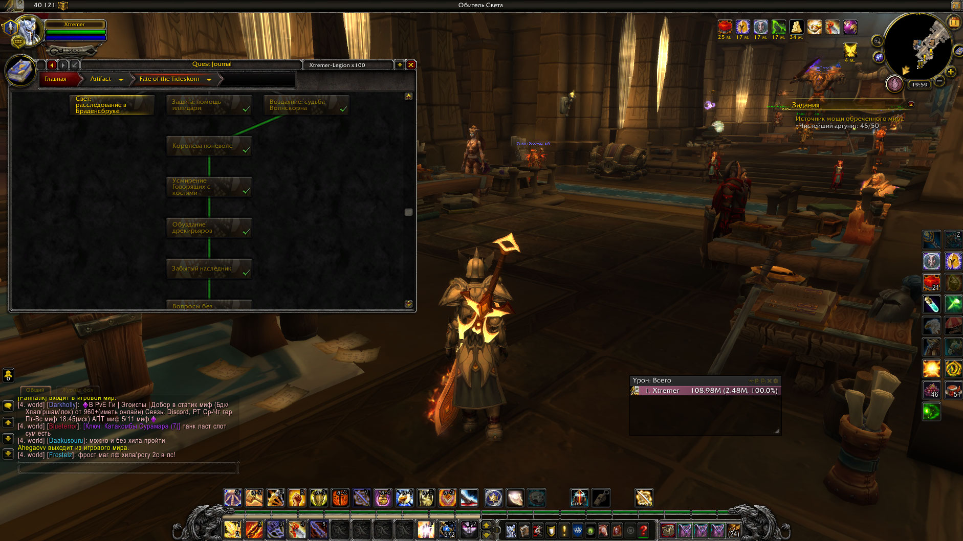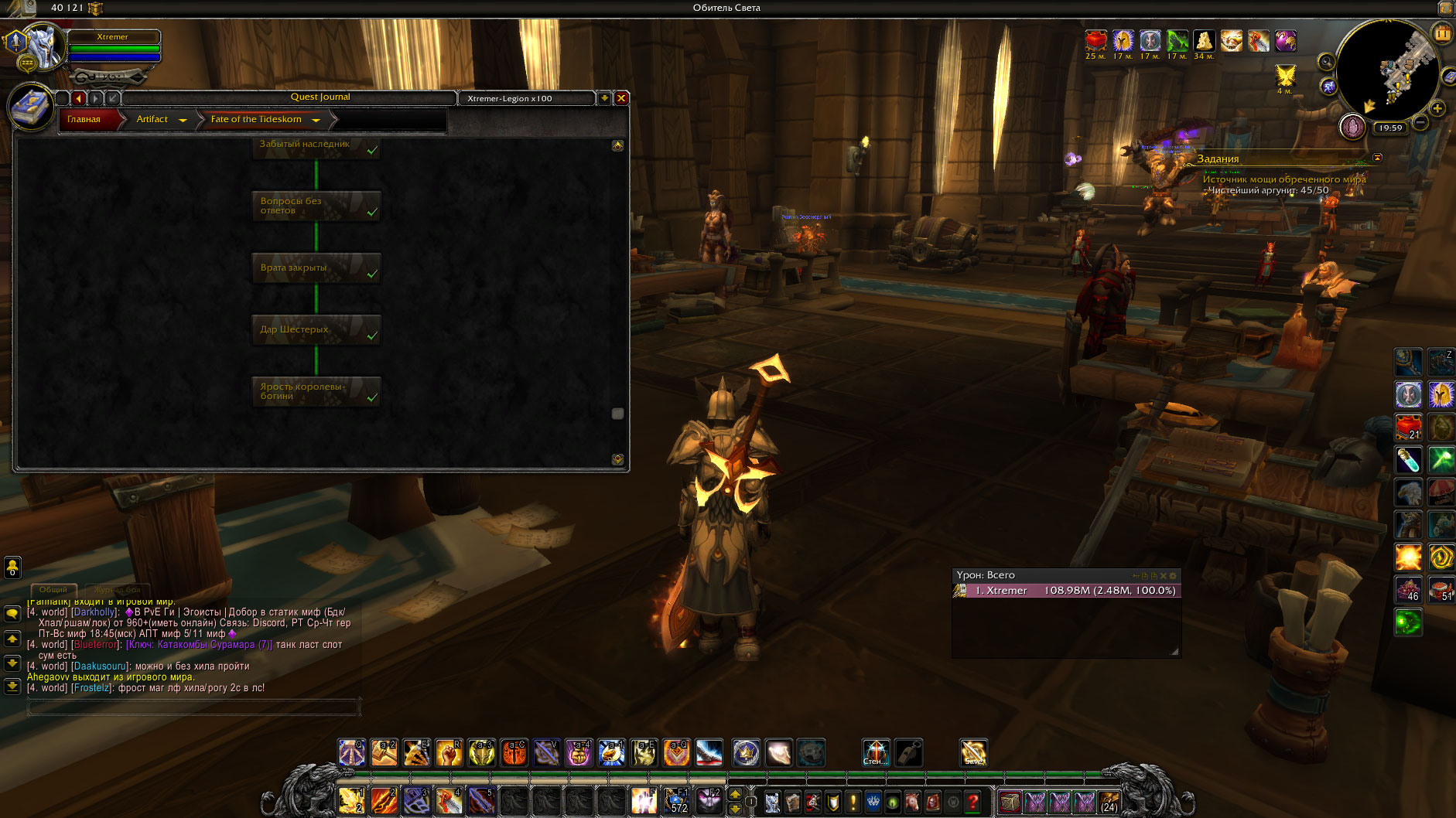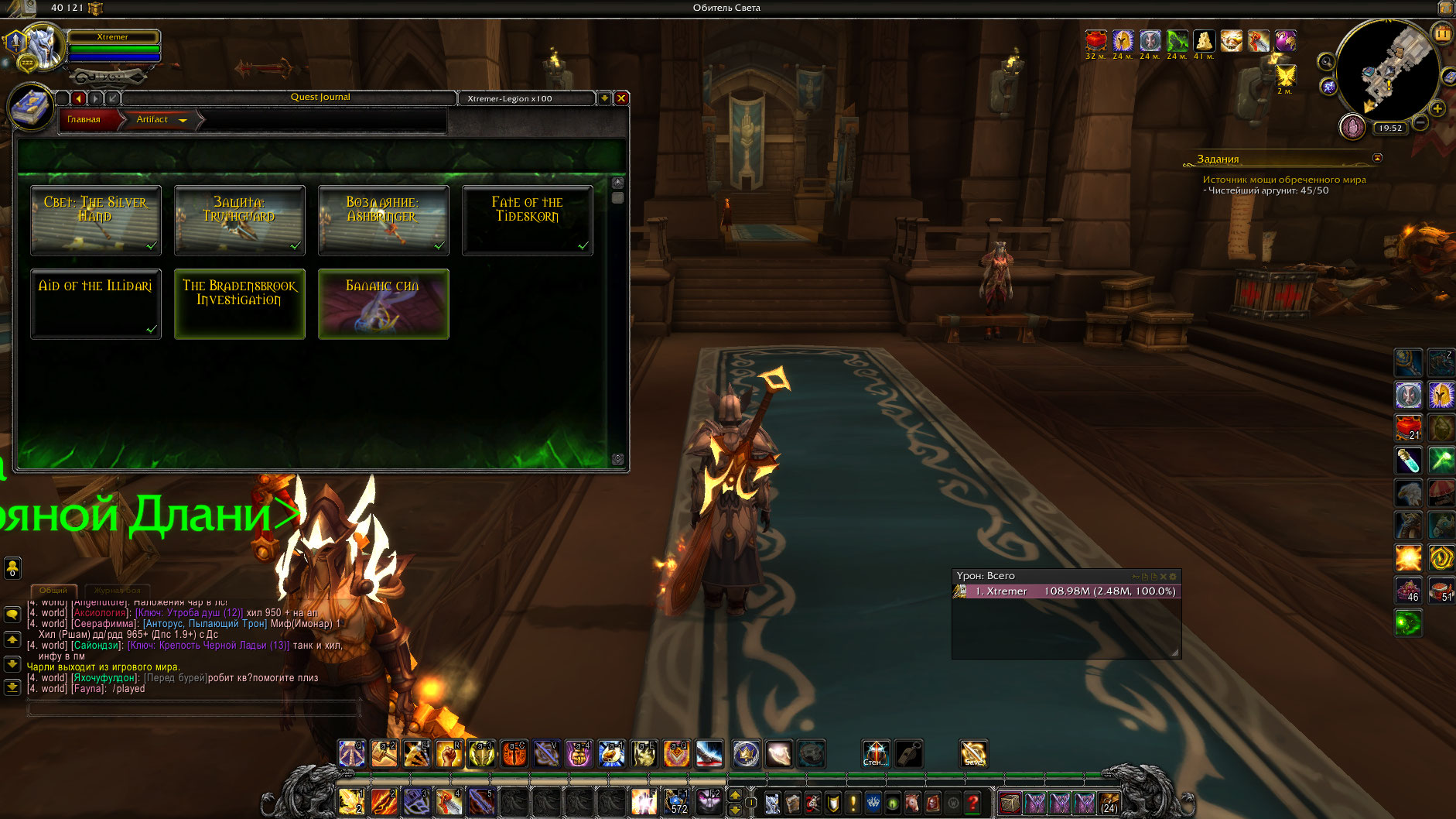 Shumin993 а скрины что ты башню магов за ретри-паладина прошел, будут? можешь качнуть аддон мастер-аддон btwQuests https://dropmefiles.com/wq8ux плагин-аддон btwQuestsLegion https://www.curseforge.com/wow/addons/btw-quests-legion/files/2579240 и заскринить что в нем указано что ты прошел цепочку квестов испытаний башни рпала полностью.. или использовать макрос .q s ID_квеста на каждый квест из этой цепочки(предварительно взяв себя в таргет) и скринить ответ по каждому квесту из этой цепочки. |