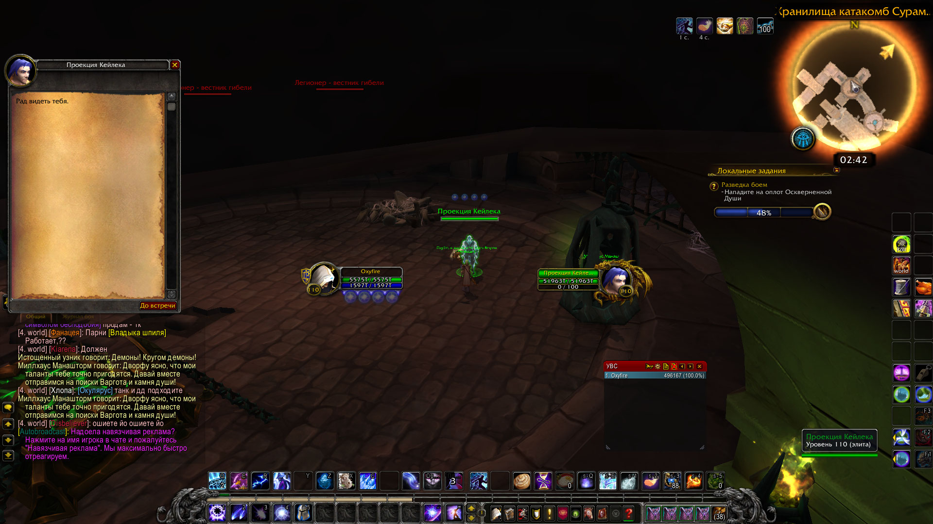 | Additional Information | Пробовал чистить кэш и релогаться, не помогло. В этом же "подвале" нашел вторую "Проекцию Кейлека" квест тоже не выдает. | ||||