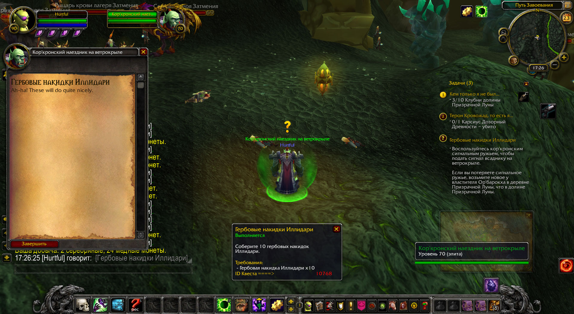 | Summary | 0006765: Гербовые накидки Иллидари (quest=10768) | ||||