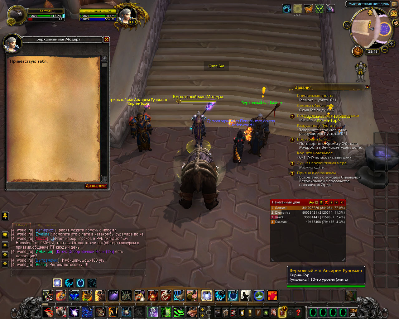 | Description | 1)ник-Semwel 2)класс-Друид 3)описание-У меня нету квестовой цепочки на Дар шестерых для башни магов на спек Страж,на ферала уже сделал,а на танке не могу потому что нету квеста в даларане. | ||||