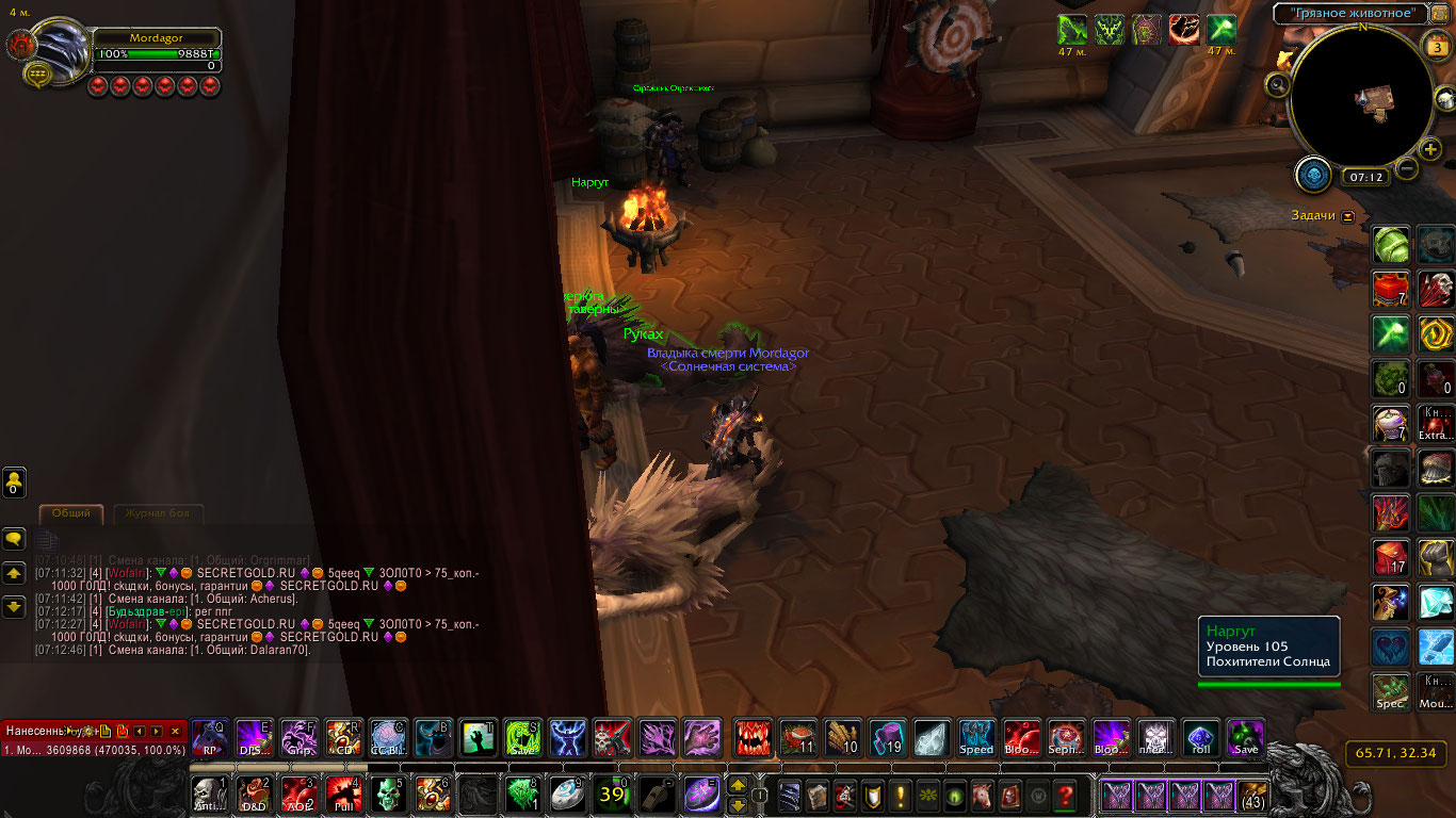 Там и читать почти нечего: "50977 - не телепортирует ИЗ оплота дк. (Если врата ставятся в оплоте, то должны тепать в точку, откуда ДК ставил ворота и тепался в оплот)". Если вы о том, что исправлено то, что не телепортировали совсем - то, это, конечно, хорошо, но там же было написано как именно должны работать, а они сейчас тпшат к месту привязки хс. Пруф чего? Что они должны возвращать или что они не возвращают у нас? Если 1, то это как бы написано в описании абилки, что тут еще пруфать, но если этого мало - в теме и описании этого багрепорта уже есть ссылки на https://ru.wowhead.com/spell=50977/врата-смерти - в комментах возврат к изначальной точке также указан, как в русских, так и в английских, а во вкладке "История изменений" можно увидеть добавление возврата в описание абилки. Если же нужен пруф возврата к месту закрепления камня у нас на сервере - это меньше чем за минуту можно проверить на тестовом сервере. У меня нет возможности записывать видео, приложу скрины: 1 перед тп из оплота, 2 после тп - в таверне орды в даларане, куда и привязан у меня камень. В оплот попал вратами из Оргриммара, после чего просто подождал 1 мин кд, не релогаясь (хотя это вроде не должно влиять). На тестовом сервере также, создал дк, привязал камень, свалил на полетке в другое место, врата в оплот, минута кд, врата к месту привязки камня. P.S. Не уверен, но еще вроде кд на врата в оплоте (возвращающие) не должно быть, только на врата в сам оплот, т.е. должно работать так: прожал врата в оплот, оттуда можно сразу прожать обратно, и потом уже будет кд на врата |