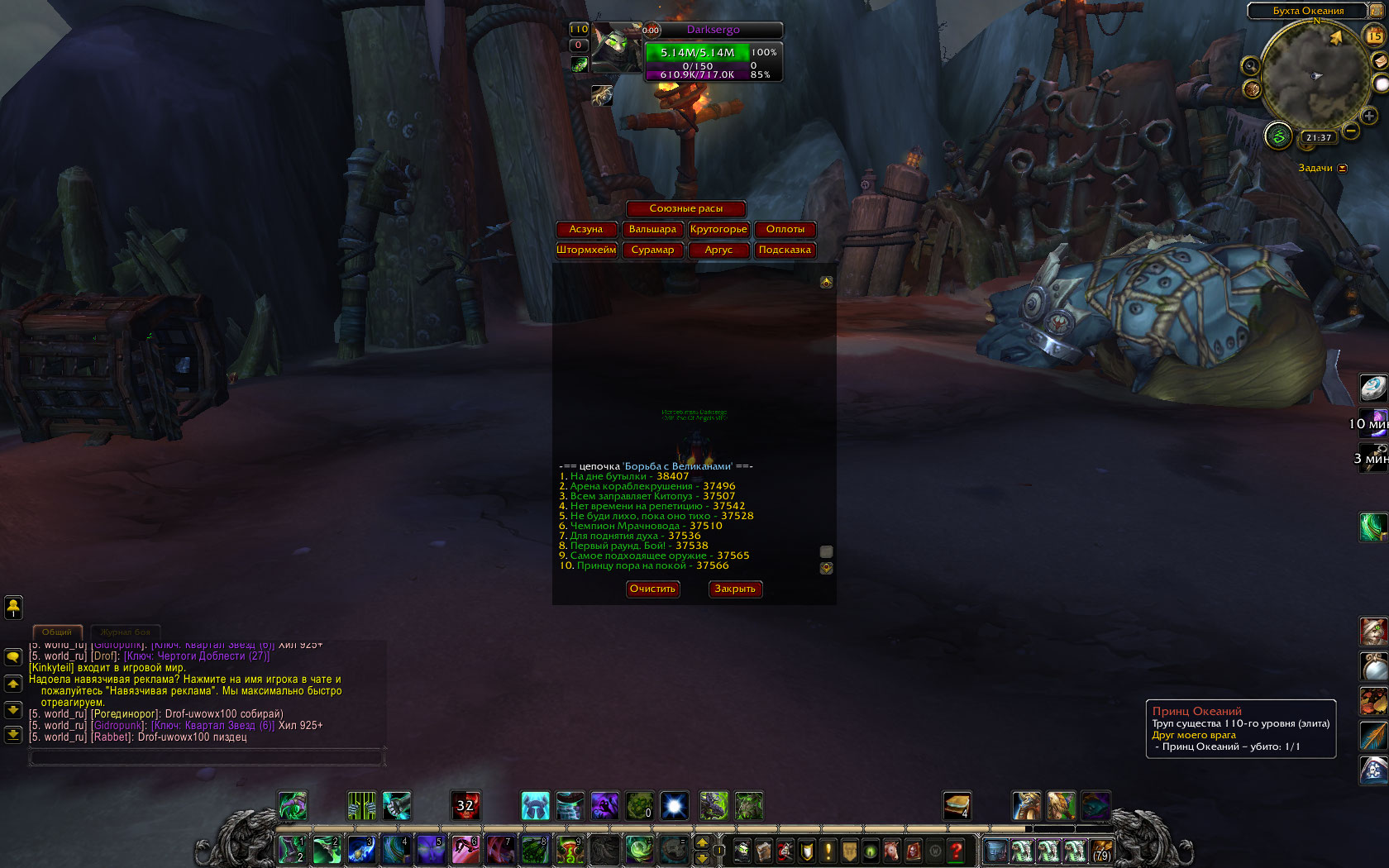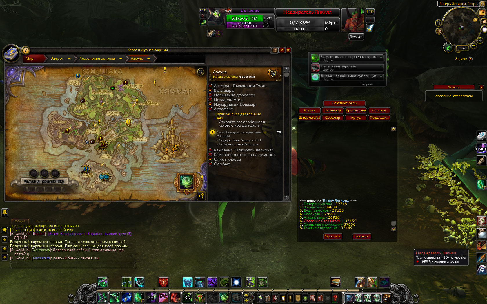 Это уже отдельный баг, для которого желательно создать отдельную тему И на будущее: для получения ачивки Хранителя Мудрости Легиона нужен только последний квест каждой сюжетной цепочки, так что не беспокойтесь, если что-то откатило или что-то не выполнили А для союзных рас, как мне помнится, нужна ещё репутация |