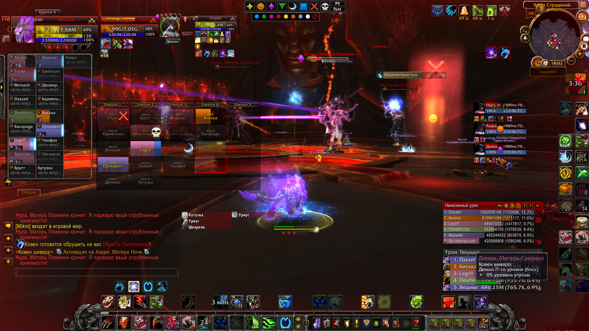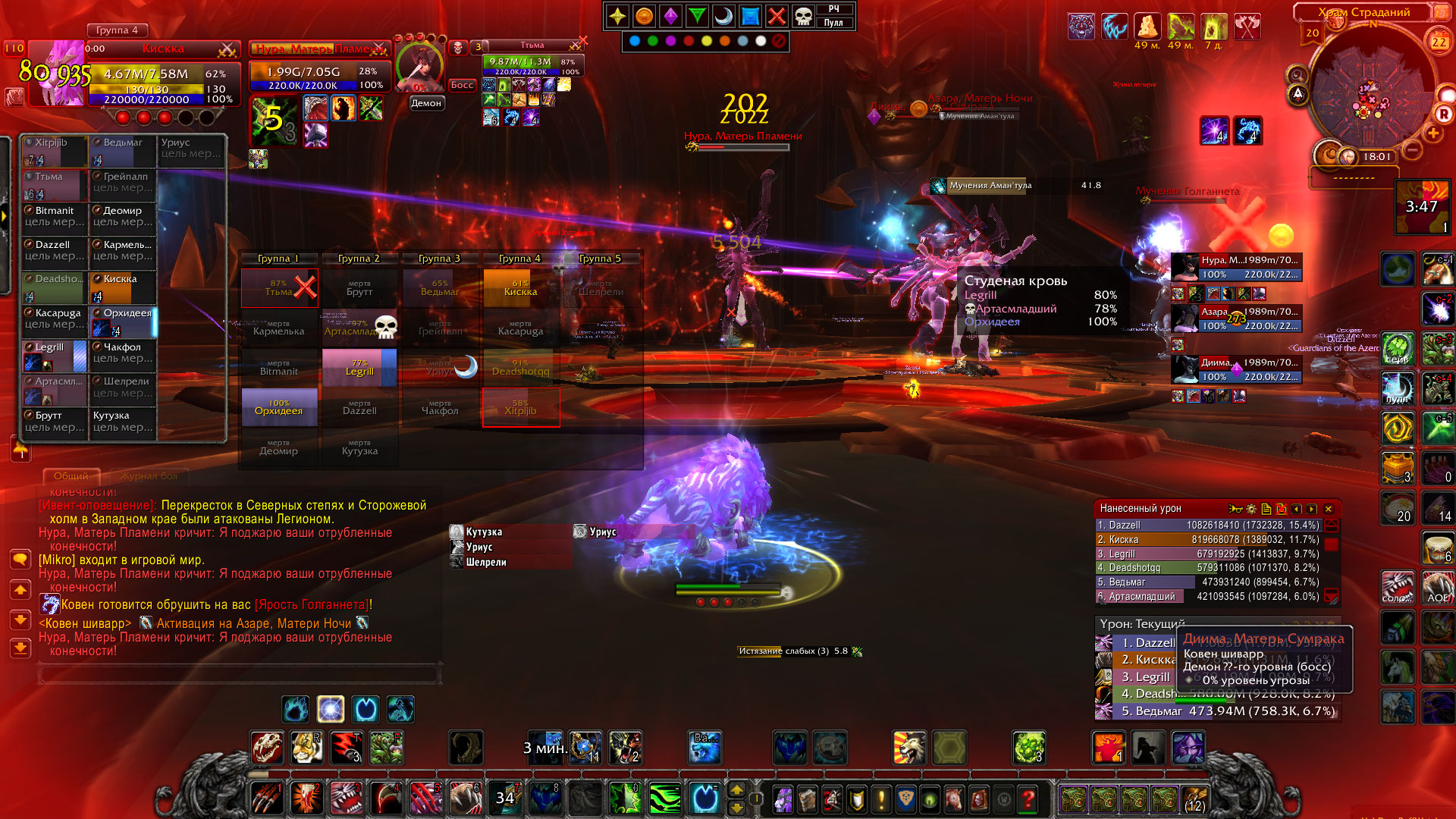 вроде сюда же: иногда 3 шиварра спрыгивает на площадку и бегает по ней, кастуя "мучение *титана*" и при этом еще и накладывая на рядом стоящих пакт шиварр |