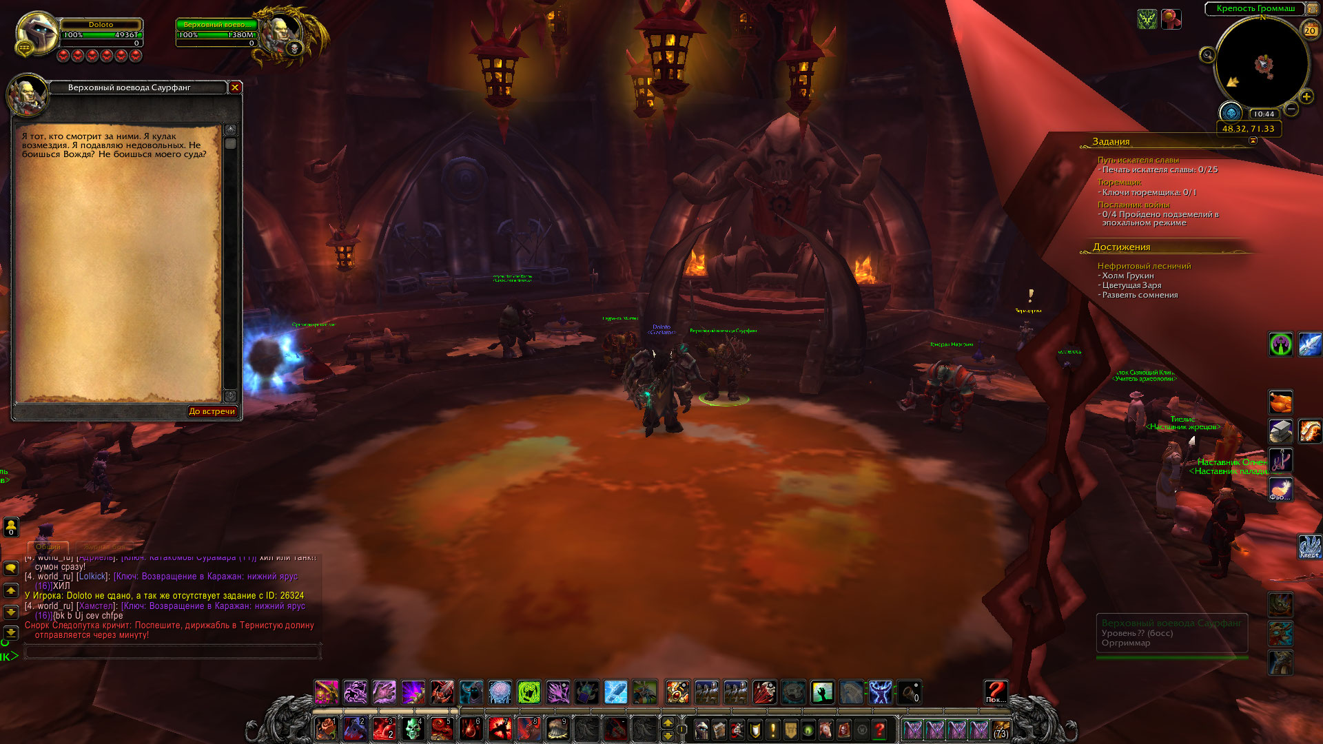 | Description | НПС https://ru.wowhead.com/npc=14720/%D0%B2%D0%B5%D1%80%D1%85%D0%BE%D0%B2%D0%BD%D1%8B%D0%B9-%D0%B2%D0%BE%D0%B5%D0%B2%D0%BE%D0%B4%D0%B0-%D1%81%D0%B0%D1%83%D1%80%D1%84%D0%B0%D0%BD%D0%B3 не дает квест https://ru.wowhead.com/quest=26324/%D0%B3%D0%B4%D0%B5-%D0%BC%D0%BE%D0%B9-%D0%B1%D0%BE%D0%B5%D0%B2%D0%BE%D0%B9-%D1%84%D0%BB%D0%BE%D1%82 , хотя преквест https://ru.wowhead.com/quest=26311/%D0%BD%D0%B5%D0%B8%D0%B7%D0%B2%D0%B5%D0%B4%D0%B0%D0%BD%D0%BD%D1%8B%D0%B5-%D0%B2%D0%BE%D0%B4%D1%8B выполнен. (Скрины) | ||||