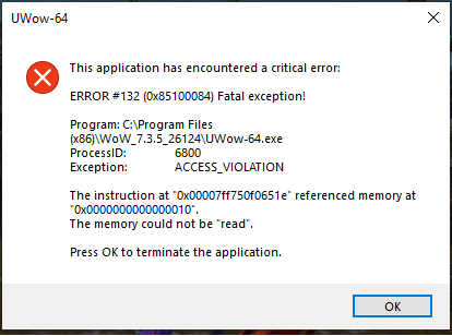 | Description | При подходе к деревни Бинан(Пандария, Вершина Кунь-Лай) вылетает ошибка и выкидывает из игры, при заходе на персонажа снова, не успеваю даже сдвинуться с места. Помогает только исправление персонажа. Квест нужен для получения классового маунта для монахов. | ||||