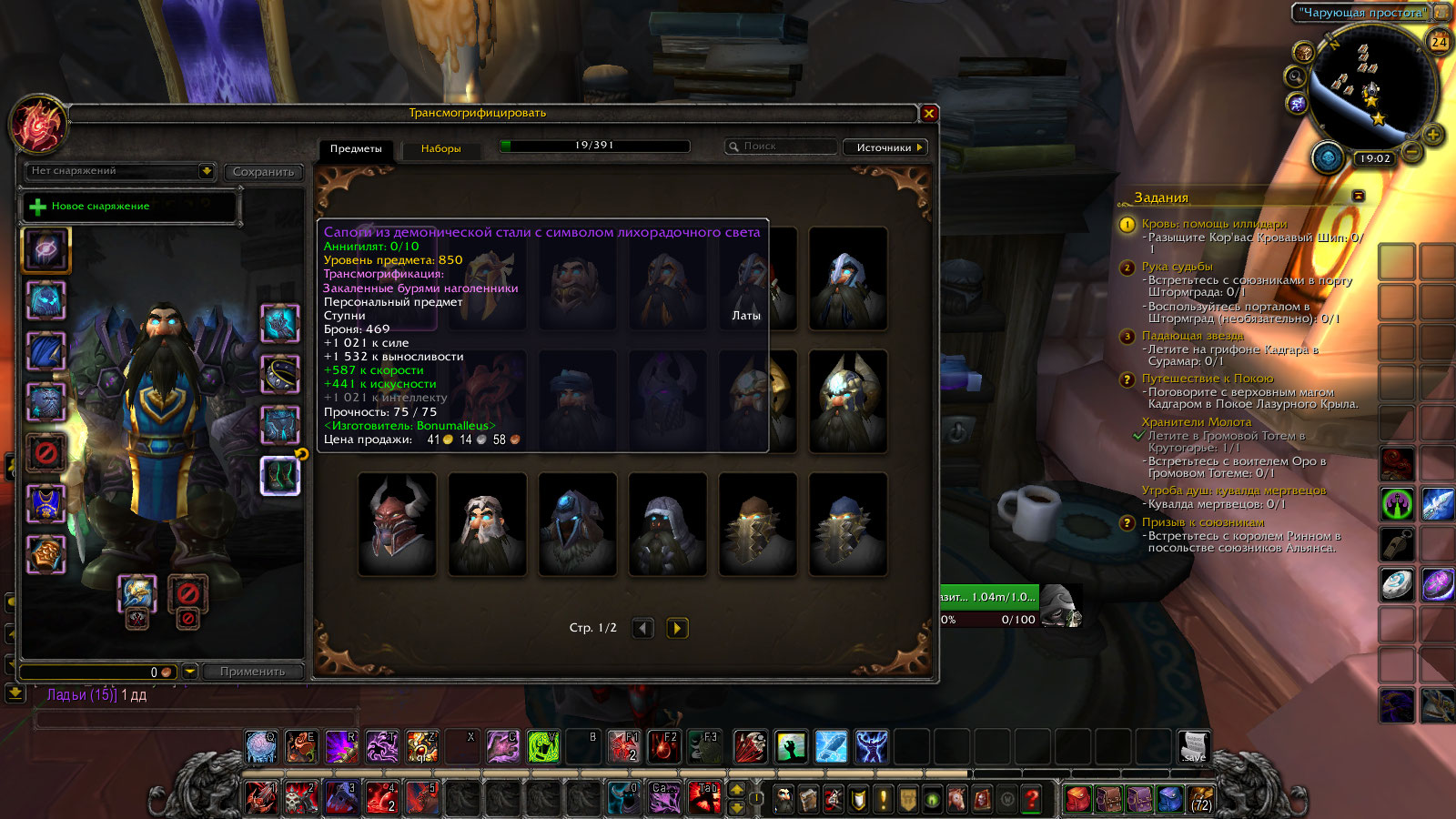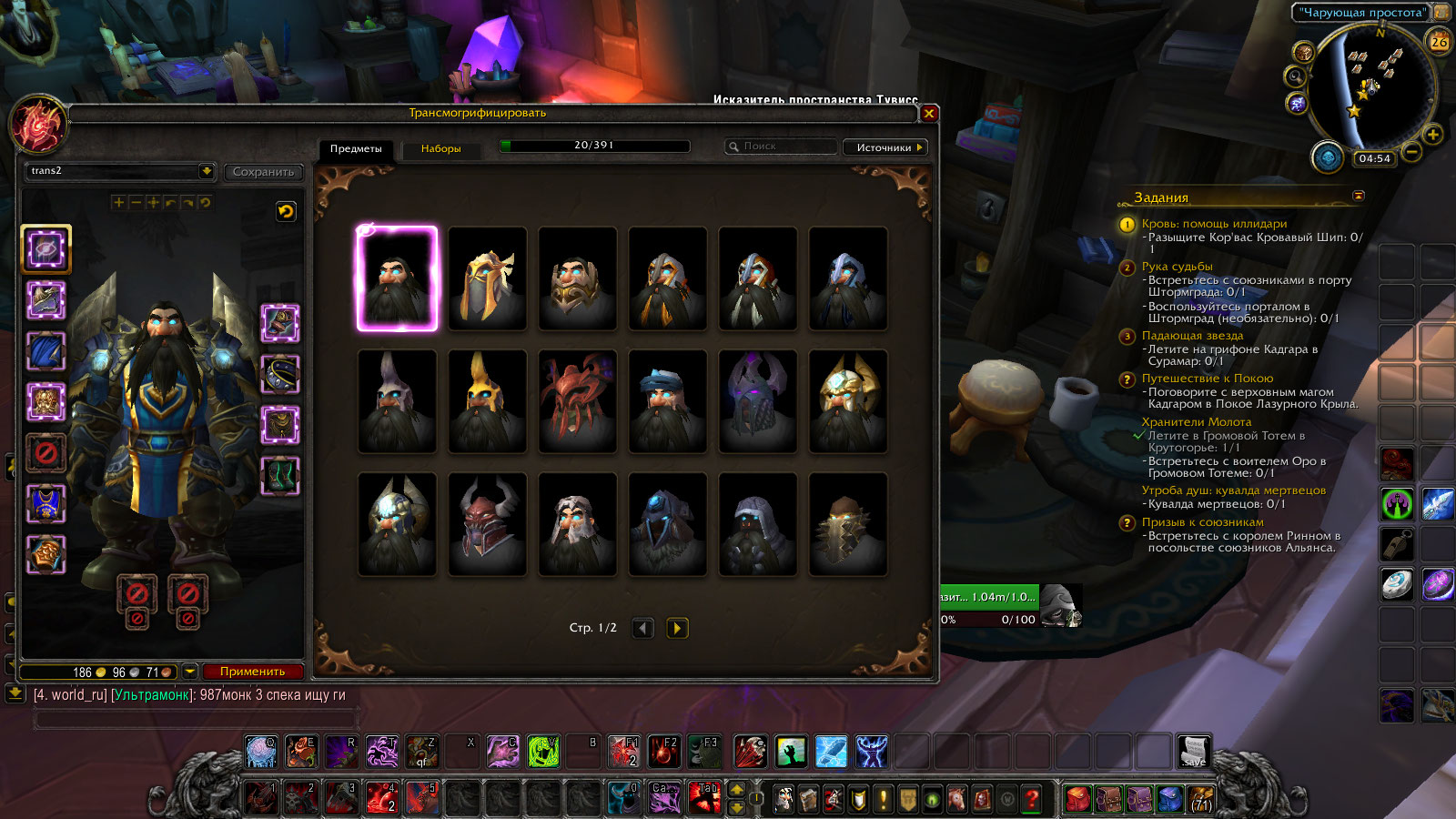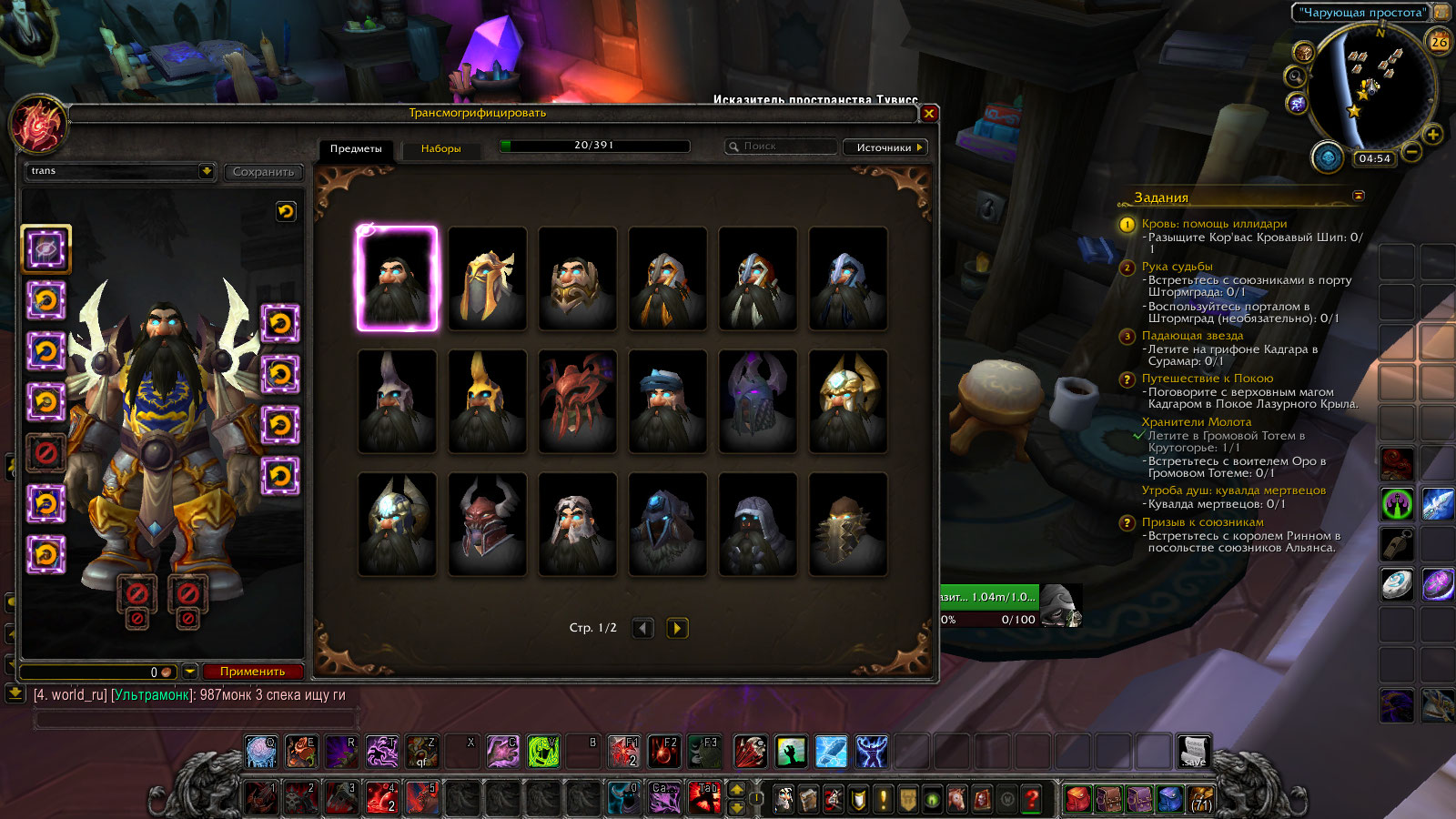 Мне нужно список что на вас что вы вы выбираете в трансмоге. У меня все работает https://youtu.be/VGZTVlZ6IfE |