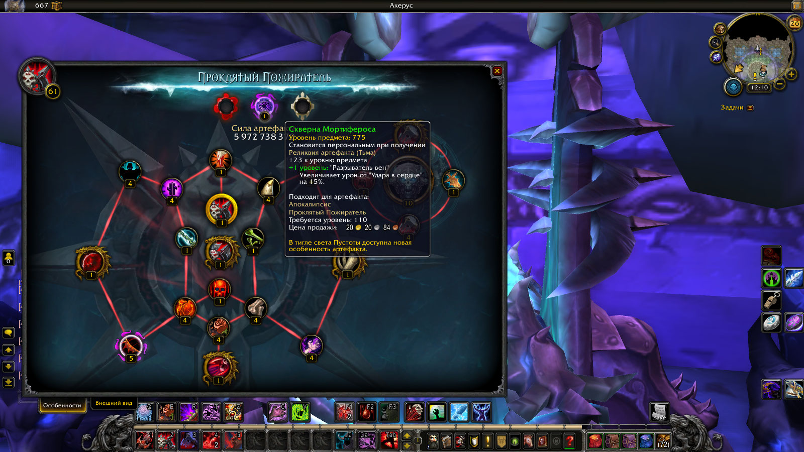 У вас персонаж перенесенный? Делали трансфер на орду или альянс? Я не могу передать баг разработчику. Так как я не могу его повторить. Багается только у вас. И жалоб на счет артефакта дк кровь не было |