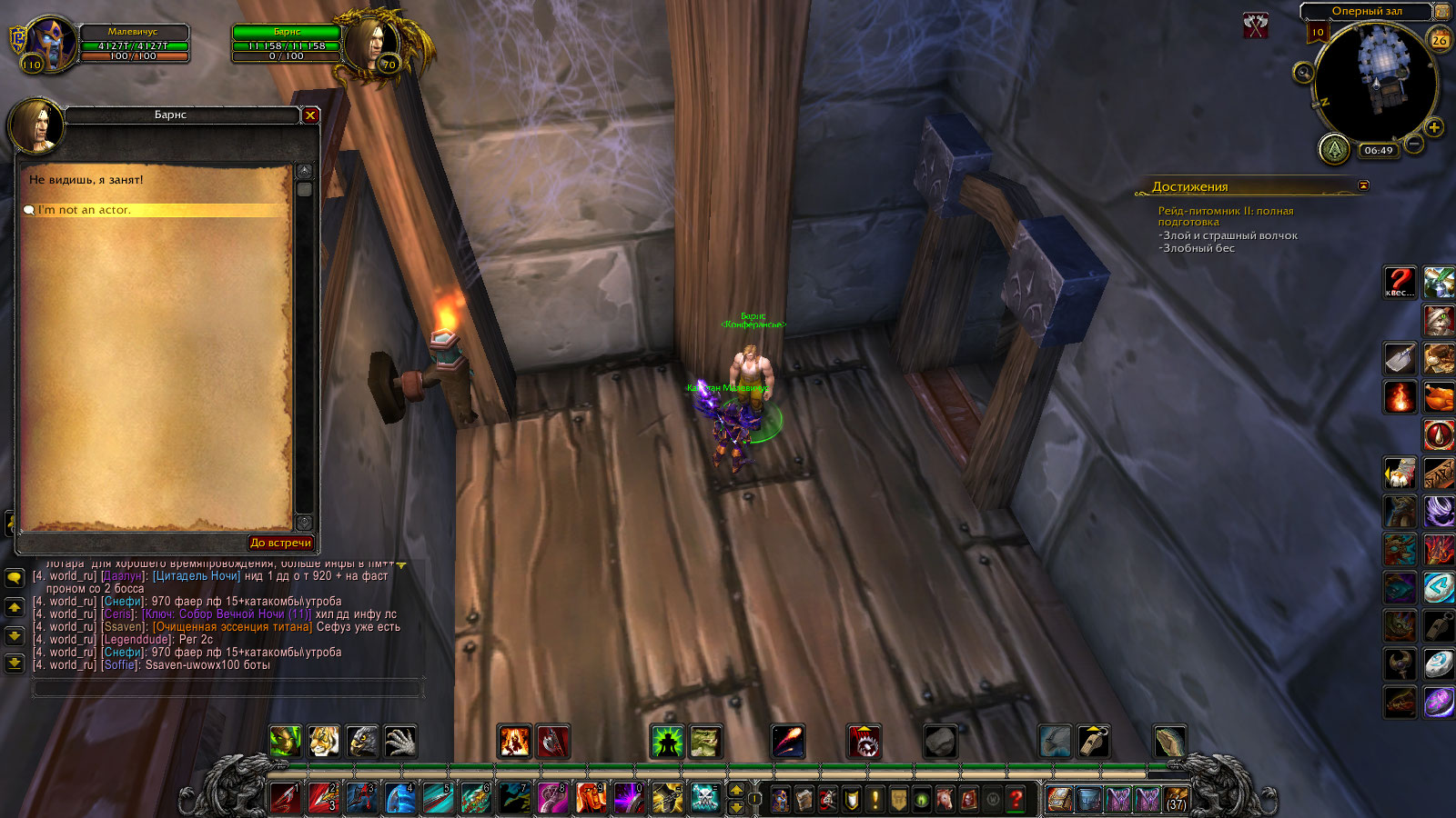 НПС 16812 он же Барнс он же Конферансье он же тупая скотина не реагирующая на диалог.По идее это ОН должен активировать Оперный зал но нет в 10 ОБ диалог не рабочий |