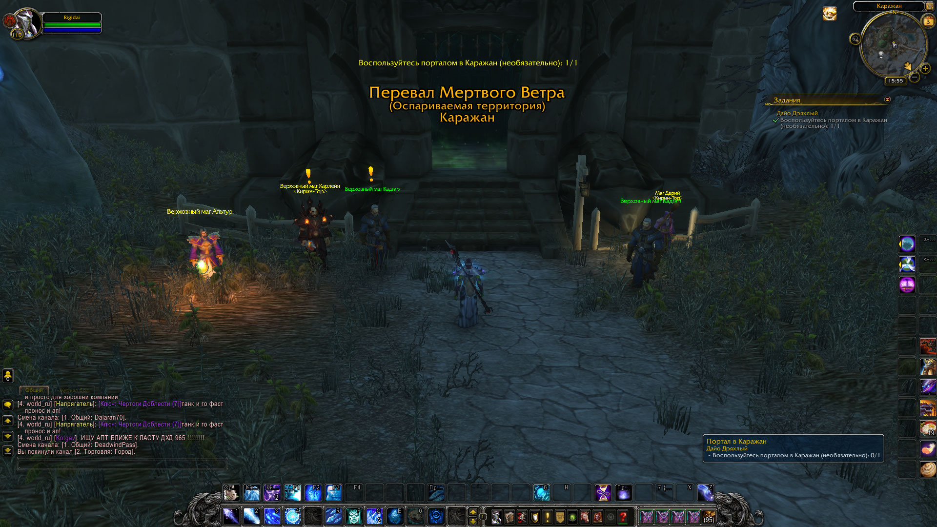 | Steps To Reproduce | Берём квест в оплоте - телепортируемся в Даларан - телепортируемся в Каражан - летим в Гниющий Шрам - говорим с Дайо - натыкаемся на баг. | ||||