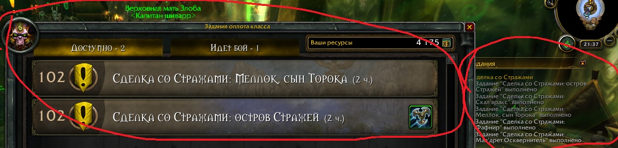 DescriptionЗадание "Сделка со стражами" (ID 42731) не выполняется. В нём необходимо выполнить 5 миссий соратниками, но первые три миссии постоянно появляются в списках, и их выполнение не вызывает остальные. В итоге само задание главной цепочки оплота не продвигается и не может быть выполнено.