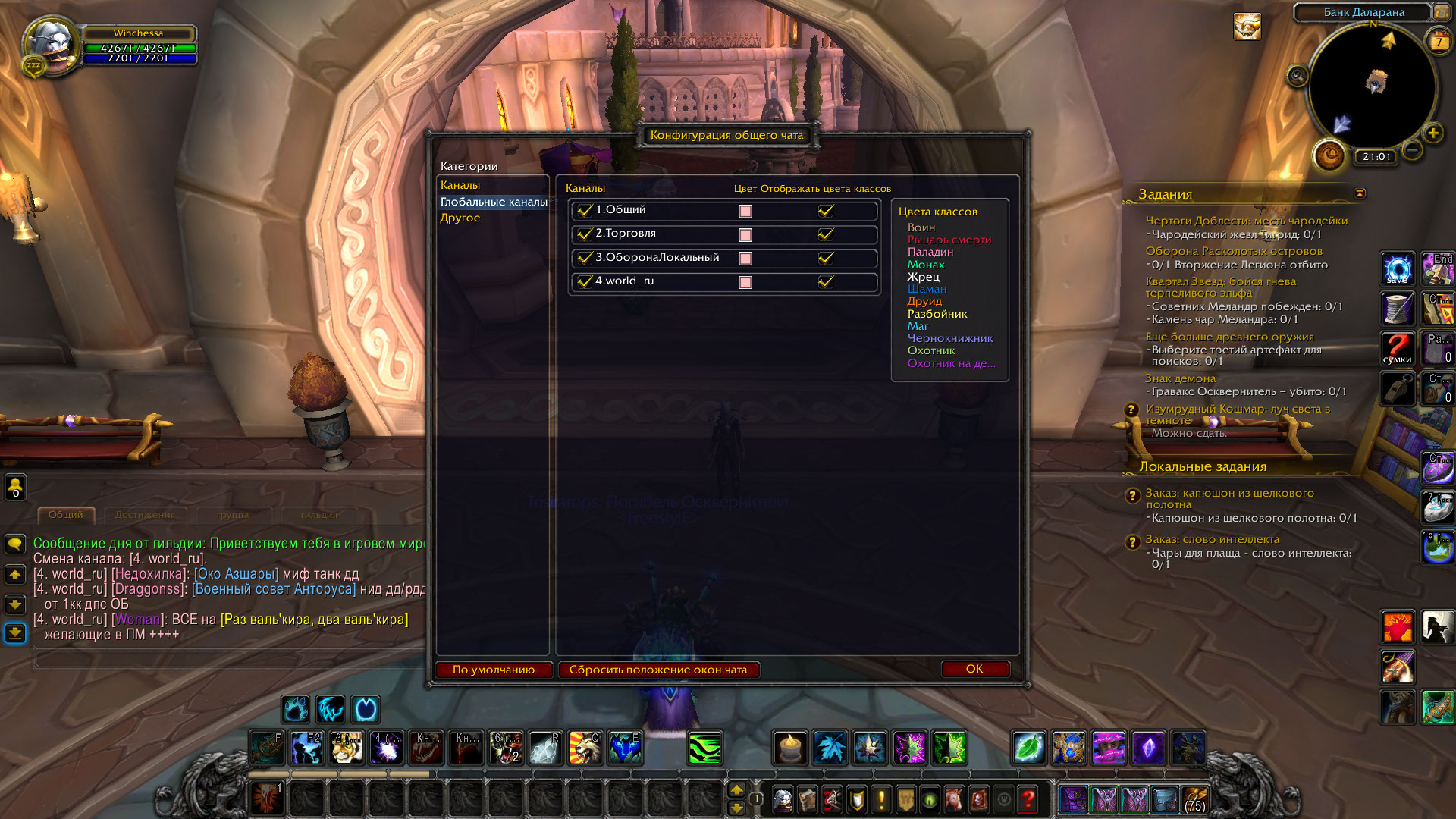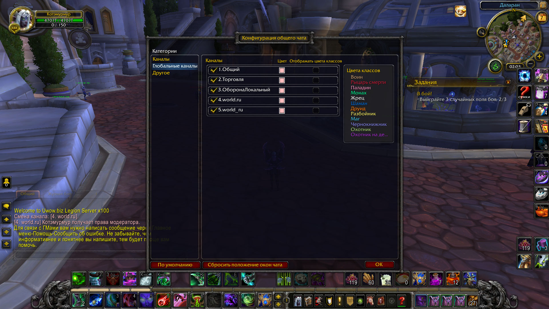 Пробовали вводить на Котомурке команду с именем канала так, как пишется на Ваших скринах, а не так как слышится ? /join world_ru Лучше эту команду вводить в городе, тогда канал Торговля будет активен и общий сядет на 4 канал. |