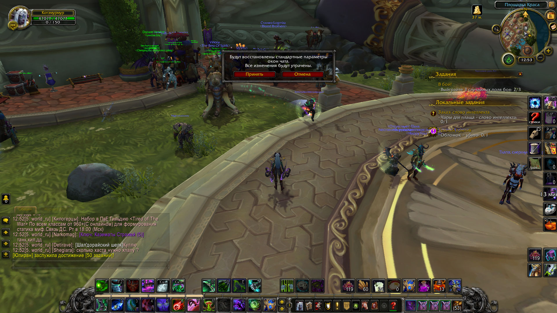 переустановила клиент - зашла, чат есть и даже больше) у меня прям давняя мечта осуществилась) а можно так и оставить? у меня, как никак, 15 лет опыта игры в вов, я готова оправдать возложенные на меня обязанности)) ладно, шутки шутками, но я, походу, создала отдельный чат /join world.ru (т.к. я набирала раньше /join world.ru) и заделалась там модератором, наверное, потому, что я там одна. А чатов теперь у меня 2: 4. world.ru и 5. world_ru (в 5-й я сама добавилась посредством команды /join world_ru) что делать? |