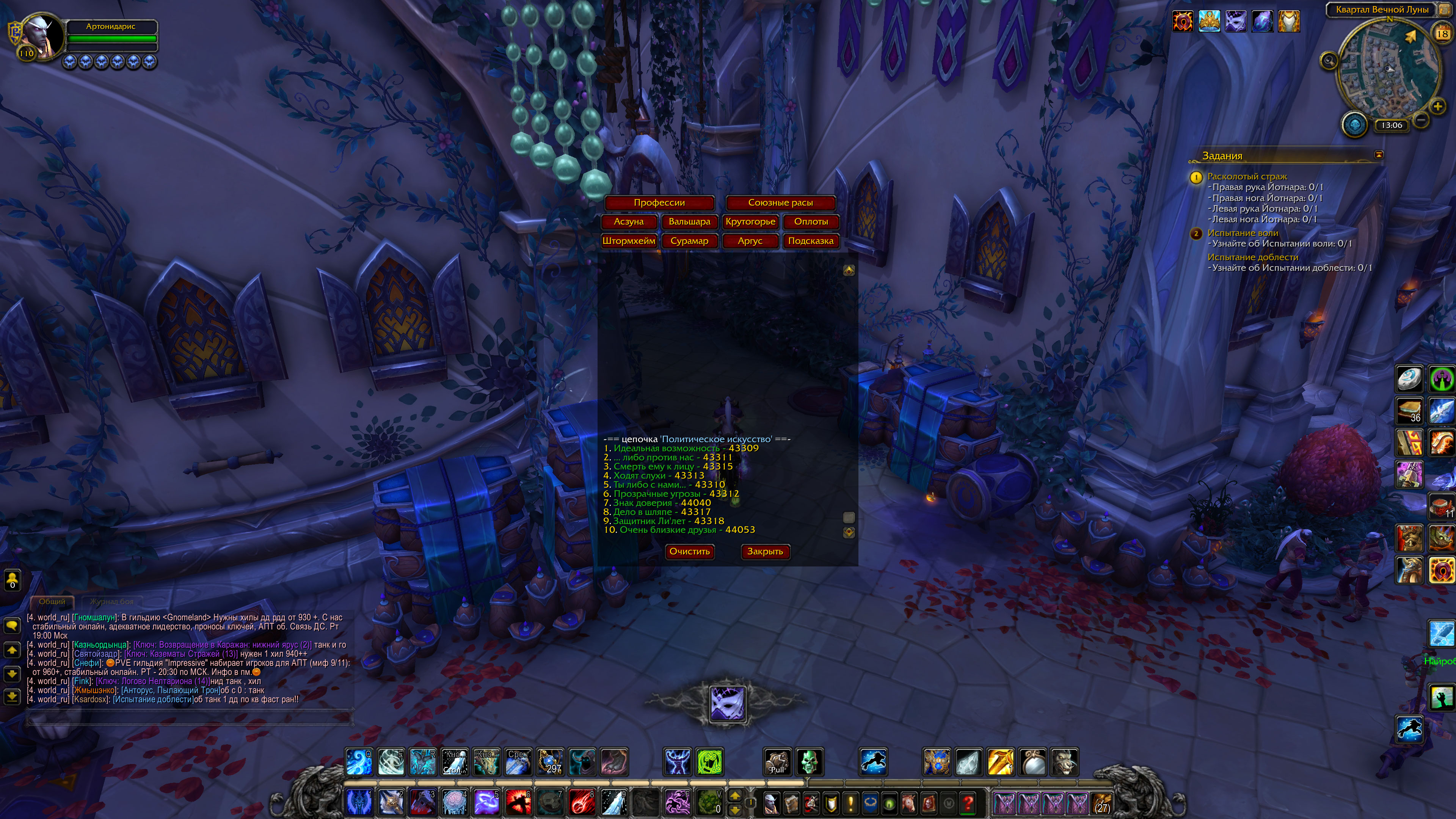 Здравствуйте! Скачайте аддон и заскриньте цепочки Сурамара http://u90850je.bget.ru/wow/Questline_tester_1.3.rar |
