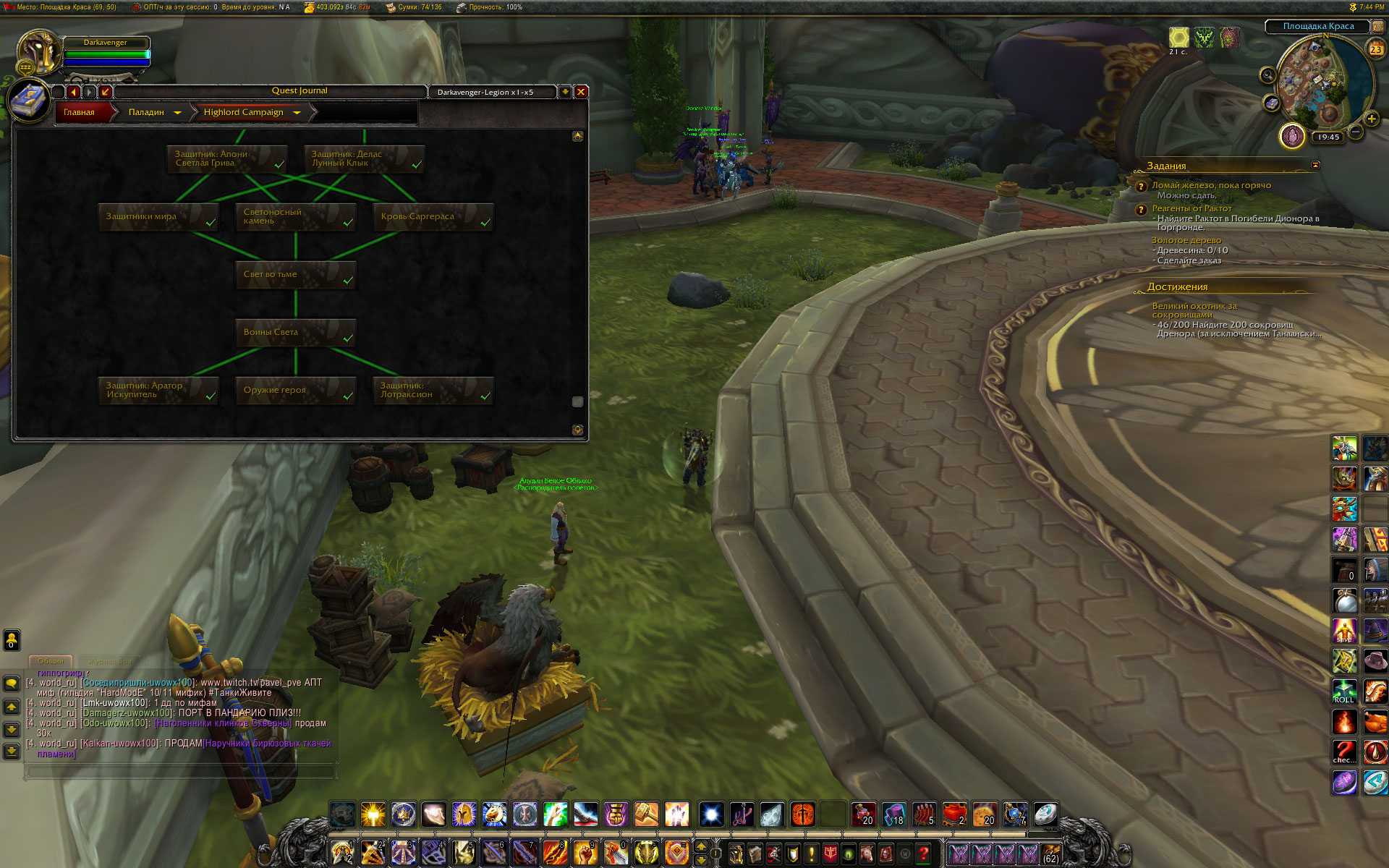| Description | Прошёл паладином всю цепочку квестов оплота класса,не засчитало 2 ачивки "Классная экипировка(нагрудник)" и "Легендарные исследования" в связи с чем не открывается цепочка квестов "Баланс Сил" прошёл всё что есть в оплоте до конца. | ||||