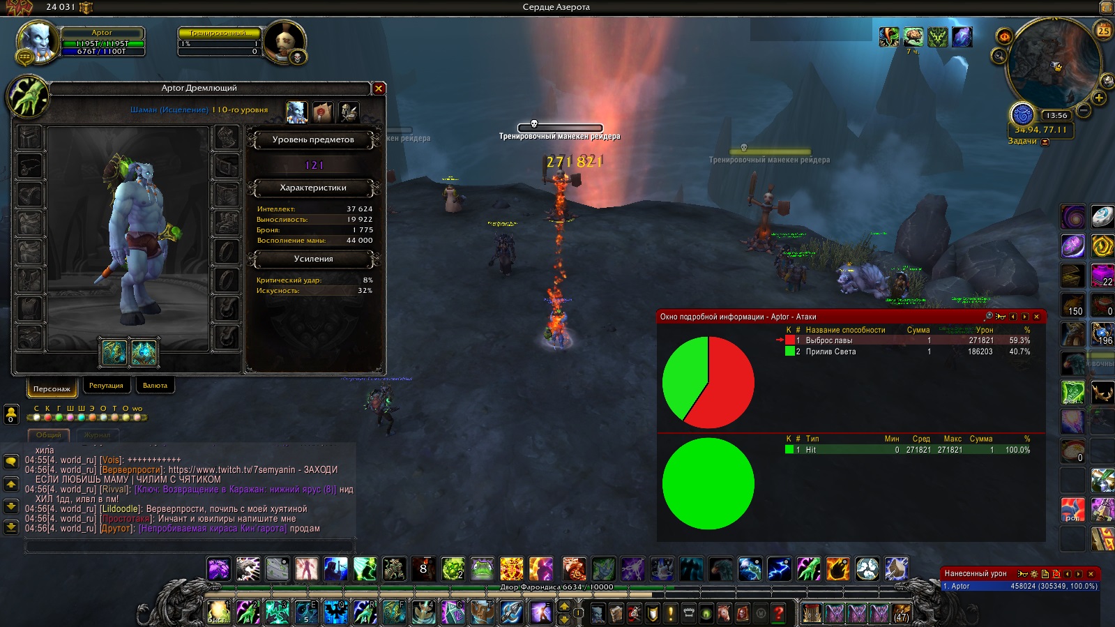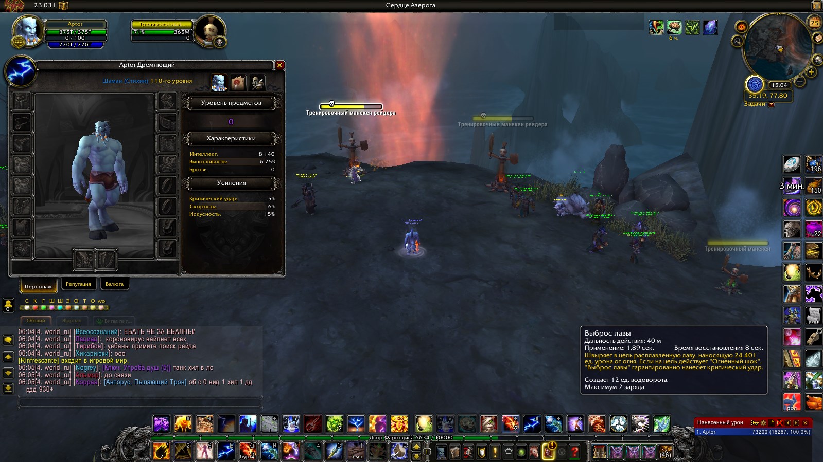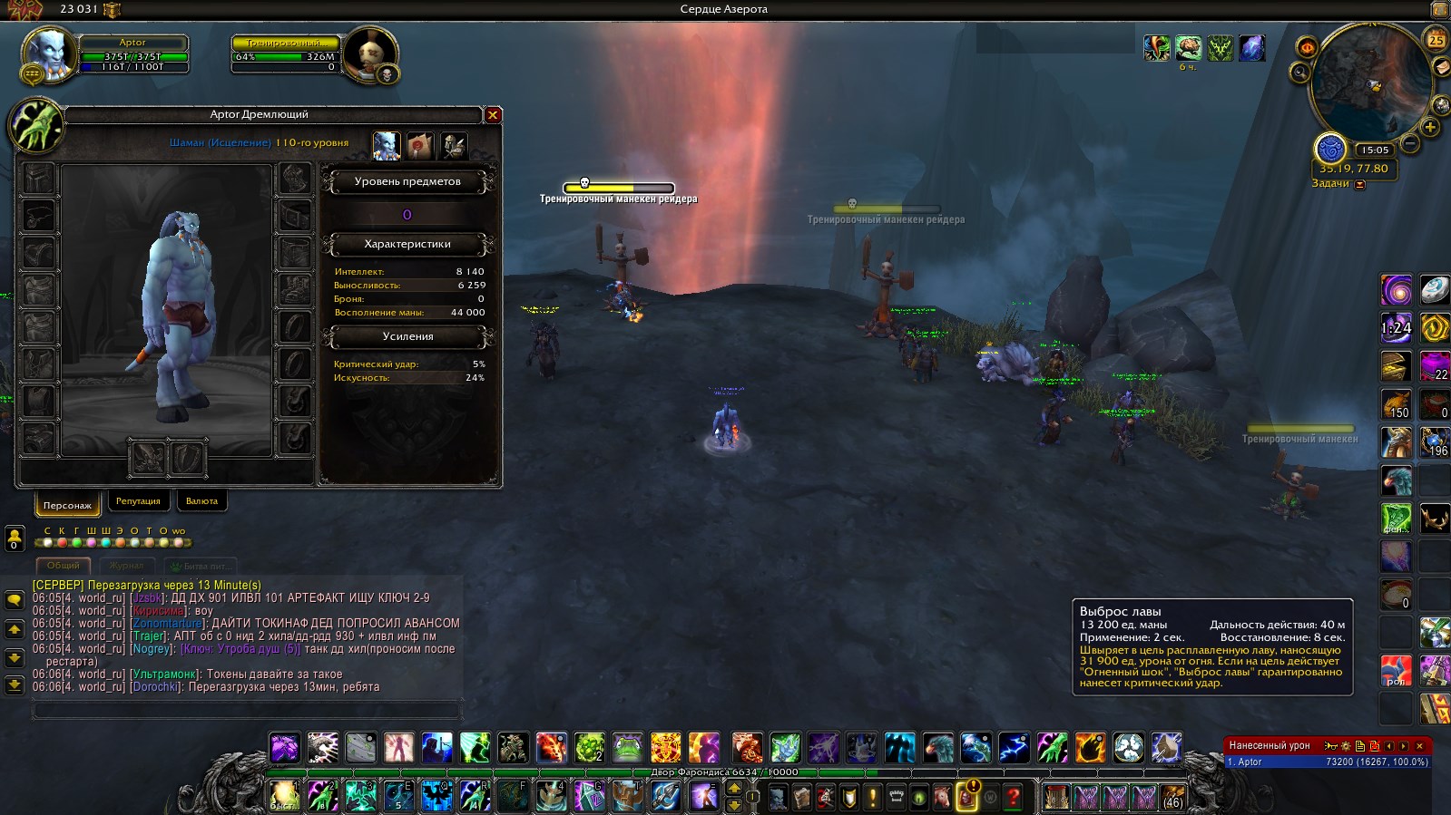 | Description | Добрый день! Хочу отметить что у элем шаманов урон занижен на выброс лавы 23,51% молнию 46,46% без учета проков, бафов, не крит и т.д. Поправьте если не так. Aptor реалм Legion x100 Сравнивал внутри класса, урон Шамана Исцеление с Шаман Стихии. Голый шаман только шит https://ru.wowhead.com/item=140536/%D1%8D%D0%B3%D0%B8%D0%B4%D0%B0-%D1%81%D0%BB%D1%83%D0%B6%D0%B8%D1%82%D0%B5%D0%BB%D0%B5%D0%B9-%D0%B7%D0%B5%D0%BC%D0%BB%D0%B8&bonus=0 и дробящие https://ru.wowhead.com/item=140546/%D1%81%D0%BA%D0%B8%D0%BF%D0%B5%D1%82%D1%80-%D1%81%D0%BB%D1%83%D0%B6%D0%B8%D1%82%D0%B5%D0%BB%D0%B5%D0%B9-%D0%B7%D0%B5%D0%BC%D0%BB%D0%B8&bonus=0 с оплота 740 илвл надетые на персонажа. В моментах если что-то прокало снимал баф. Так же пробовал с надетыми артефактным оружием для каждого спека соответственно. | ||||