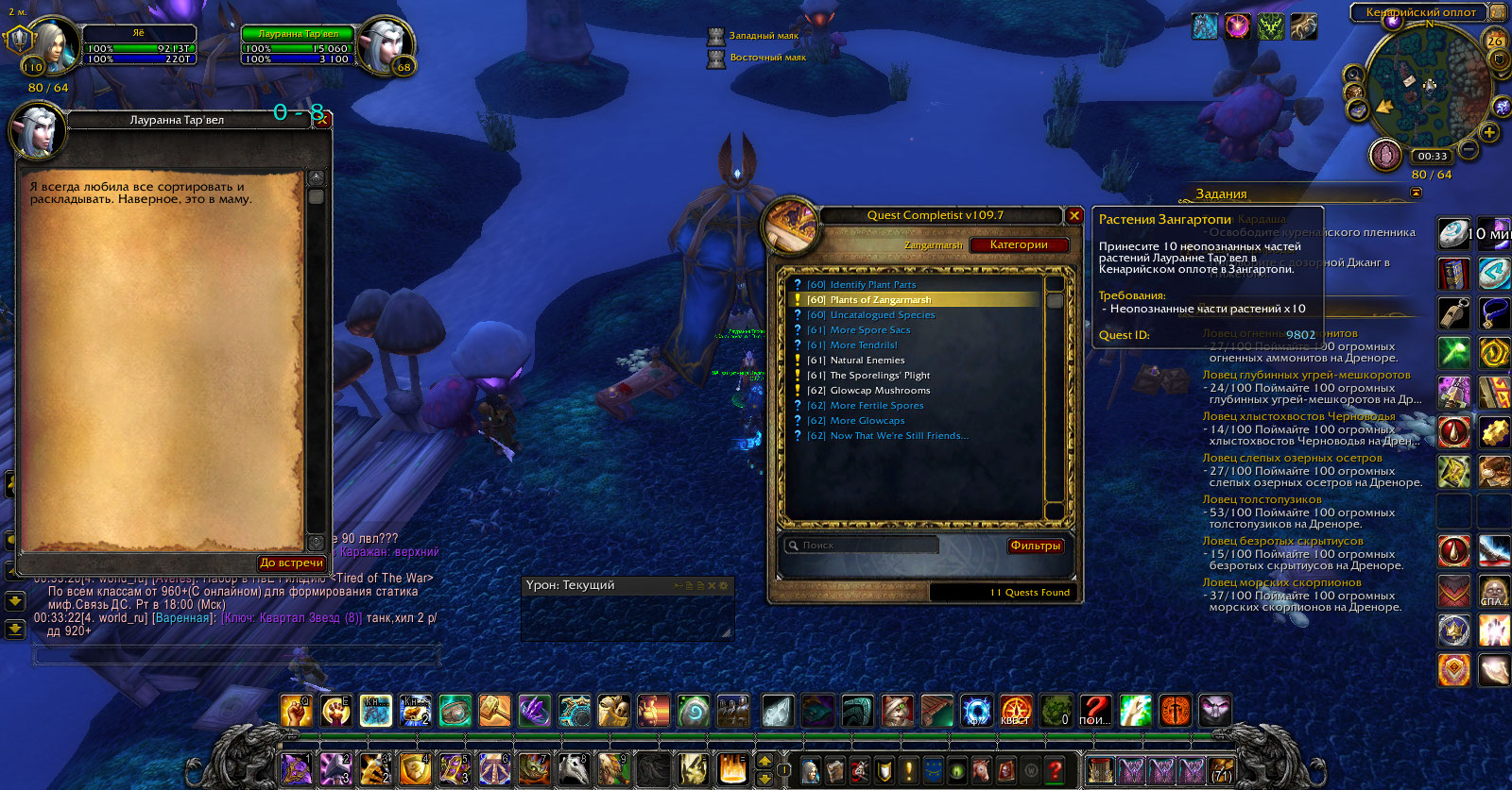 Не выполнено всего 4 квеста: 1) у https://ru.wowhead.com/npc=17909/ https://ru.wowhead.com/quest=9802/ 2) у https://ru.wowhead.com/npc=17924/ https://ru.wowhead.com/quest=9808/ 3) у https://ru.wowhead.com/npc=17923/ https://ru.wowhead.com/quest=9739/ 4) у https://ru.wowhead.com/npc=17923/ https://ru.wowhead.com/quest=9743/ Скриншоты будут ниже, что ни у одного из этих НПС нет никаких квестов. |