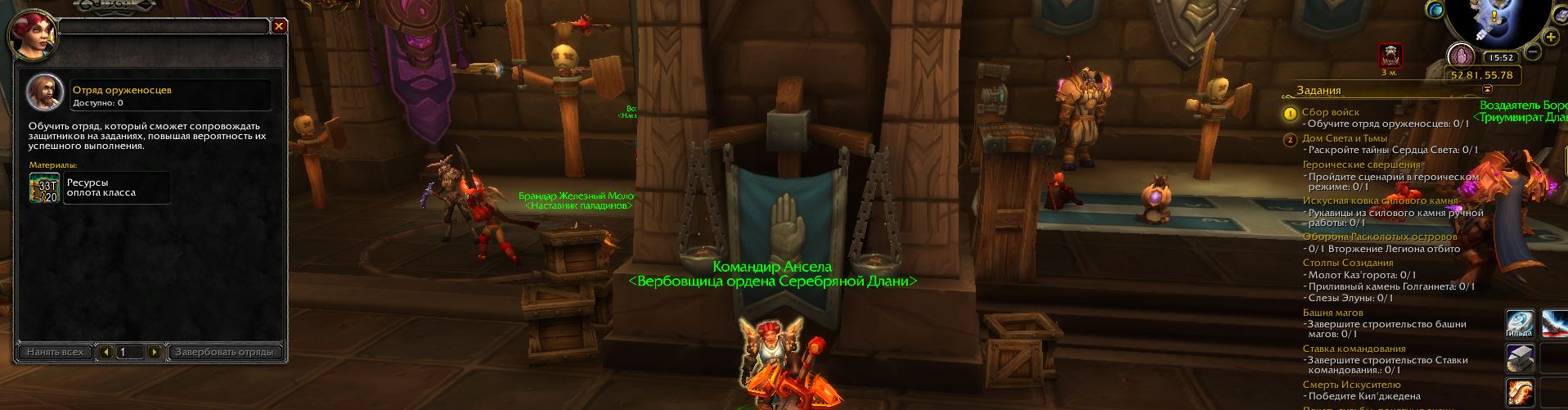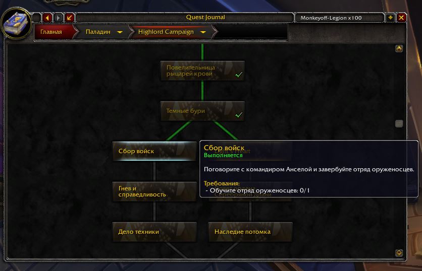 | Description | Не выполняются два квеста: 1)"Полный арсенал" и 2)"Сбор войск". 1. Думал, что выбирается последний артефакт в оплоте класса, но гм мне сказал, что при выходе из оплота. Но проблема не поменялась. Что в самом оплоте, что около него, при выборе выходит пустая табличка, где естественно выбрать ничего я не могу. 2. Во-первых, это кв у меня прописывается в разделе "Кампания рыцаря смерти", хотя у меня паладин. Во-вторых, я уже завербовывал отряд, но кв не засчиталось. В-третьих, когда подхожу к НПС, у которого происходит вербовка, то мне пишет недоступно, а кнопка не работает. | ||||