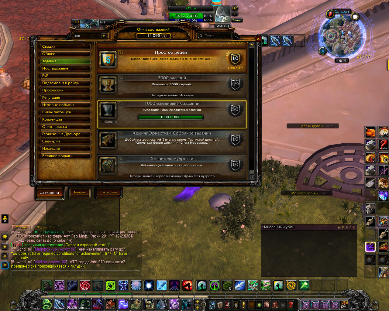 | Description | https://ru.wowhead.com/achievement=977/1000-%D0%B5%D0%B6%D0%B5%D0%B4%D0%BD%D0%B5%D0%B2%D0%BD%D1%8B%D1%85-%D0%B7%D0%B0%D0%B4%D0%B0%D0%BD%D0%B8%D0%B9 не засчитывается. | ||||