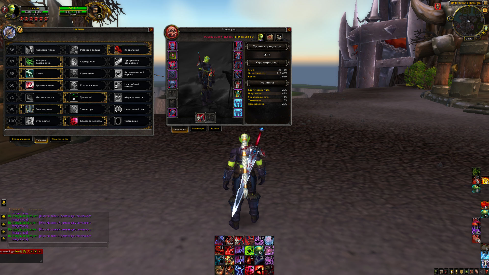 3 скрина-с эльфийкой с фана фаершторма с талантами 8 скринов- с орчихой с фана у вас .Там старт шмот без лег и потом 925 с легами в мире и на бг 4 скрина - я создал дк в старт шмоте смотрите хп в мире и на бг выходит у танк воина на бг хп меньше всех других танков |