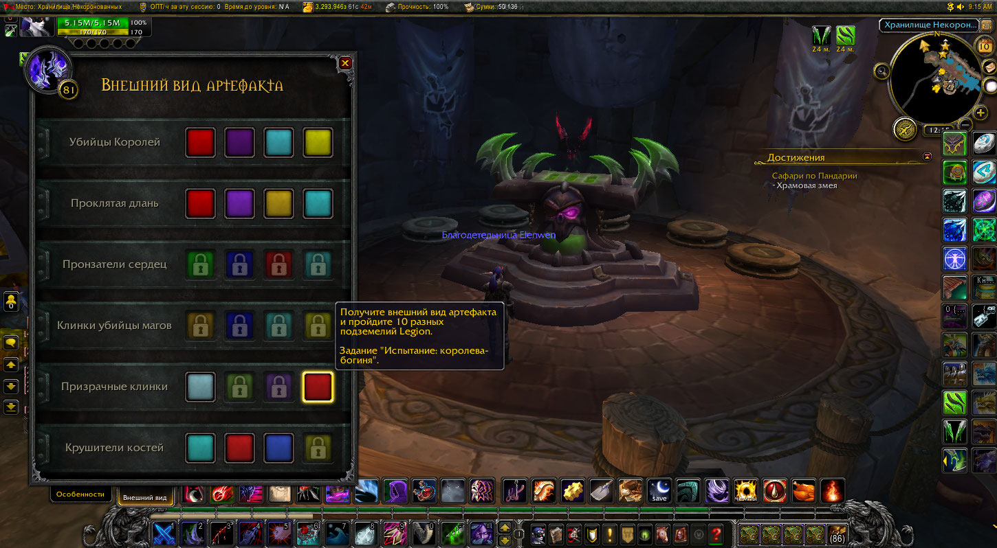 | Description | Не работает вариант расцветки внешнего вида артефакта https://ru.wowhead.com/item=128870/%D1%83%D0%B1%D0%B8%D0%B9%D1%86%D1%8B-%D0%BA%D0%BE%D1%80%D0%BE%D0%BB%D0%B5%D0%B9&bonus=0 полученный за прохождение 10 подземелий Legion после задания-испытания: https://ru.wowhead.com/quest=45526/%D1%8F%D1%80%D0%BE%D1%81%D1%82%D1%8C-%D0%BA%D0%BE%D1%80%D0%BE%D0%BB%D0%B5%D0%B2%D1%8B-%D0%B1%D0%BE%D0%B3%D0%B8%D0%BD%D0%B8 | ||||