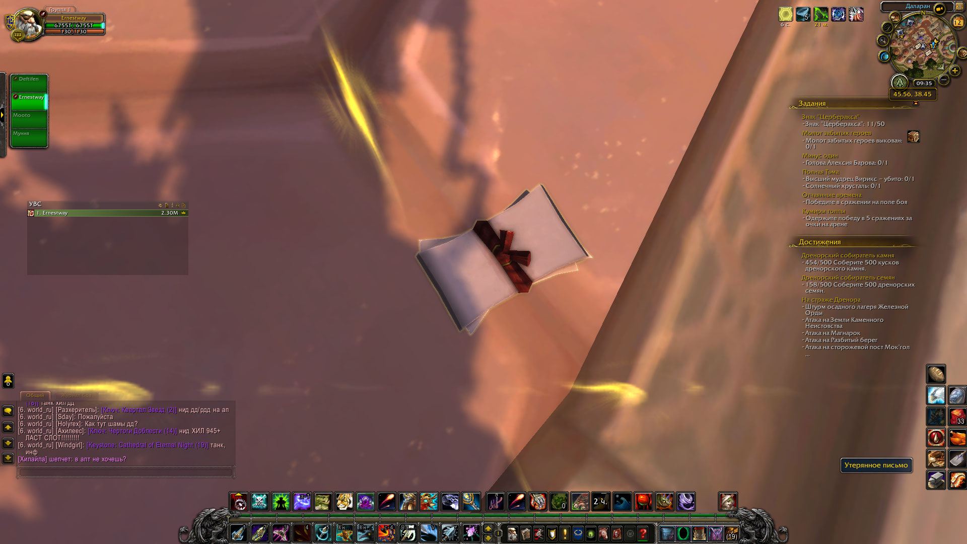 https://www.curseforge.com/wow/addons/btw-quests-legion/download/2579240 https://www.curseforge.com/wow/addons/btw-quests/download/2580238 подходящая для наших серверов версия аддона , скачивать надо оба файла, распаковывать в папку /Addons в клиенте. Другие подобные аддоны не мешают. Поможет быстрее найти на каком квесте цепочки Ваш персонаж был грубо остановлен. зы. у меня на воине письмо подбиралось раньше многократно, можно было взять квест с него, но сдавать было некому. Потом починили хозяйку черного рынка. Квесты первый и второй получилось сдать... и все. Должно было бы прийти по почте приглашение от почтмейстера. Но не пришло. аддон показывает критерий продолжения цепочки , который не выполнен. И соответственно, на почте делать нечего, следующих квестов нет. Это к тому, что может когда то сдали и осталось висеть в ожидании, пока что то придет почтой. Вот и забылось. |