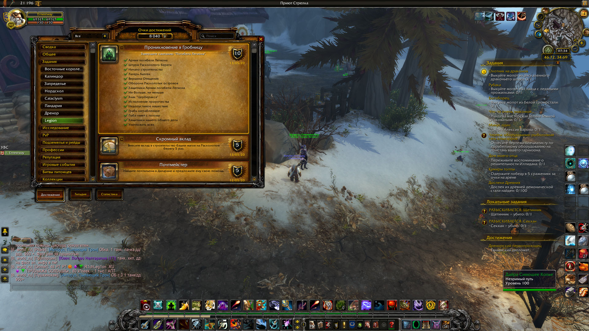 Недавно здесь разбирали аналогичную ситуацию. Коротко. Последовательность действий - как должно было бы быть взять у Майев квест Защитники Армии Погибели Легиона отправиться в оплот, где взять стартовый квест цепочки на дополнительного соратника (это тот кв которого у Вас нет) выполнить цепочку и завербовать соратника (засчитается выполнение квеста у Майев) вернуться на Расколотый берег и сдать квест продолжить выполнение цепочки квестов на берегу. При этом, если у Вас на этом персонаже уже сдан квест https://ru.wowhead.com/quest=47137/%D0%B7%D0%B0%D1%89%D0%B8%D1%82%D0%BD%D0%B8%D0%BA%D0%B8-%D0%B0%D1%80%D0%BC%D0%B8%D0%B8-%D0%BF%D0%BE%D0%B3%D0%B8%D0%B1%D0%B5%D0%BB%D0%B8-%D0%BB%D0%B5%D0%B3%D0%B8%D0%BE%D0%BD%D0%B0#criteria-of , то в оплоте уже не будет цепочки на доп соратника. Она как бы вырезана получается. Проверка: .q s 47137 и для проверки первого и второго кв цепочки .q s 45551 .q s 45552 Если 47137 сдано, а 45551 нет , Вам один путь - писать на форум Вашего сервера в игровой раздел со скриншотами, что квест выполнен, а следующие квесты не выполнены и НПС не выдает их. Скриншоты проверки в качестве аргументов, просить чтобы ГМ выдал квест 45551 . Именно командой, с аддона могут не принять. Оформлять тему согласно требованиям форума. |