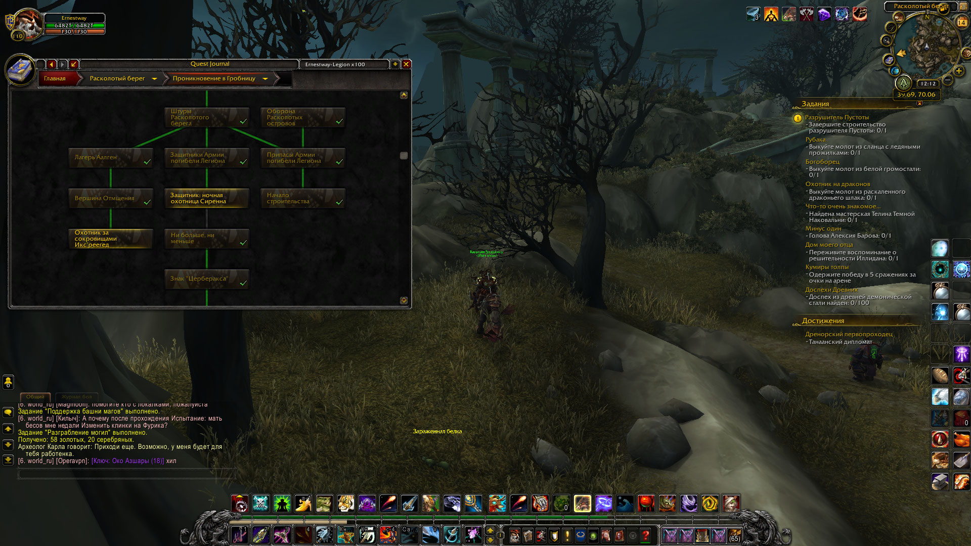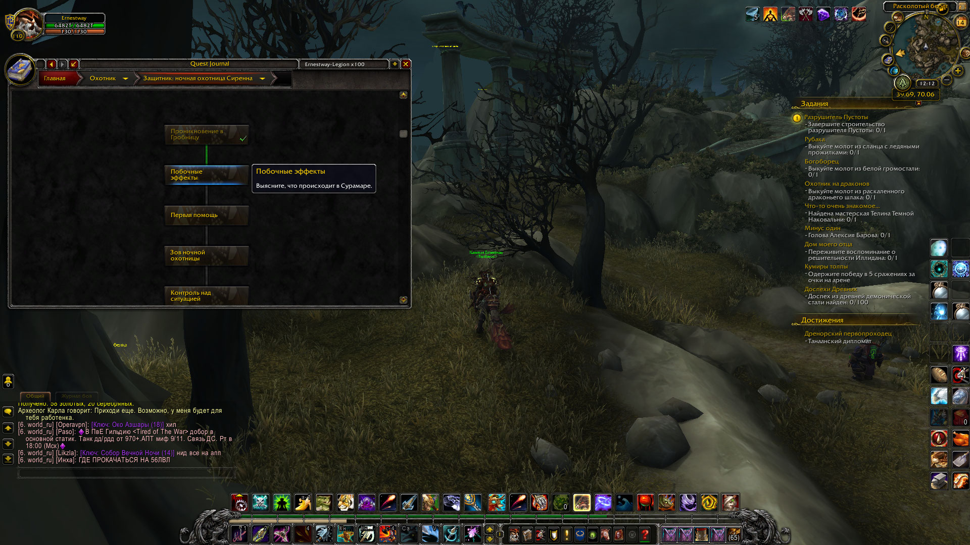 | Description | Не могу начать заключительную цепочку квестов кампании https://ru.wowhead.com/storyline/глаза-в-лесных-тенях-228 на последнего защитника https://ru.wowhead.com/quest=46048/защитник-ночная-охотница-сиренна. Сам квест, начинающий цепочку: https://ru.wowhead.com/quest=45551/побочные-эффекты. Квест берется у NPC https://ru.wowhead.com/npc=108455/шандриса-оперенная-луна. Через команду .q s проверил все предыдущие квесты в ветке, все сданы. После же этого задания сданных квестов нет. Достижение, необходимое для старта цепочки https://ru.wowhead.com/achievement=11546/проникновение-в-гробницу на персонаже выполнено. | ||||