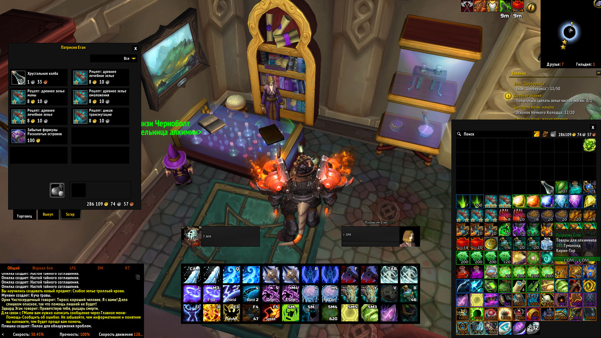 Castmaster Вы как то не так подходите к решению проблемы. Уверяю Вас, что рецепт можно купить на два квеста позже указанного и в процессе выполнения не требуется делать настоящее зелье . Там даже в квесте написано - попытаться сделать зелье. То есть по ходу выполнения возможно будут где то там какие то квестовые ингры и на выходе квестовое зелье... было бы, если бы попытка сделать зелье не превратилась в шоу. Вы бы посмотрели видео что ли на вовхеде, как этот квест выполнять. например это видео https://www.youtube.com/watch?v=QF0BYrj7gd8 А вот что у Вас происходит при попытке выполнения квеста Вы так и не признались. |