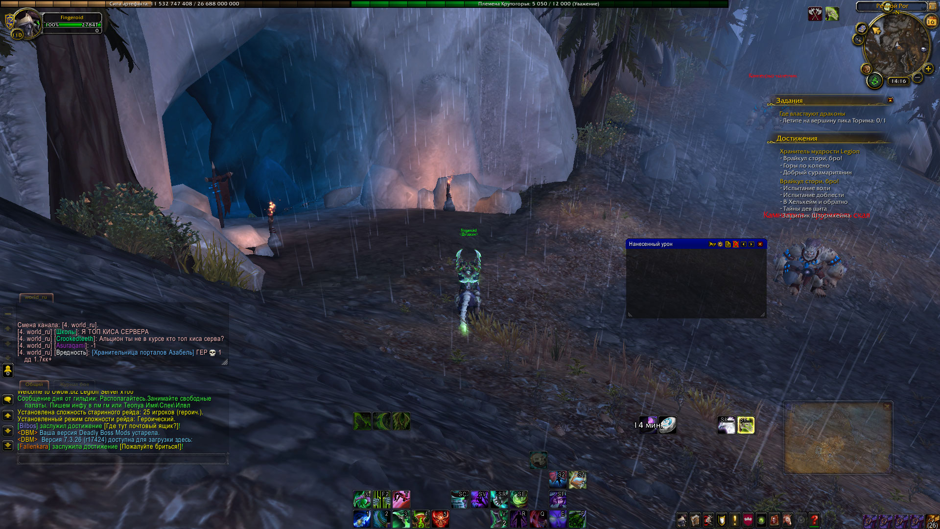 Отменить квест, почистить кеш, взять квест еще раз. Позавчера случайно проходил сюжетку Крутогорья. Заметил, что в некоторых местах, особенно, если НПС должен куда то идти и его нужно сопровождать, при наличии локалки в том месте - может на доли секунды или насовсем срываться фаза. То есть НПС начинает мерцать или идет и исчезает в воздухе. В особенности это заметно на персонажах, которые уже делали много локалок в Крутогорье (в данном случае) . Но после чистки кеша проблемы исчезают. В общем то такое пропадание НПС случалось только в подвале Громового тотема, когда там неписи собирались проводить ритуалы, а наверху проистекала локалка "Атака на Громовой тотем". В указанной пещере проблем не возникло вообще. |