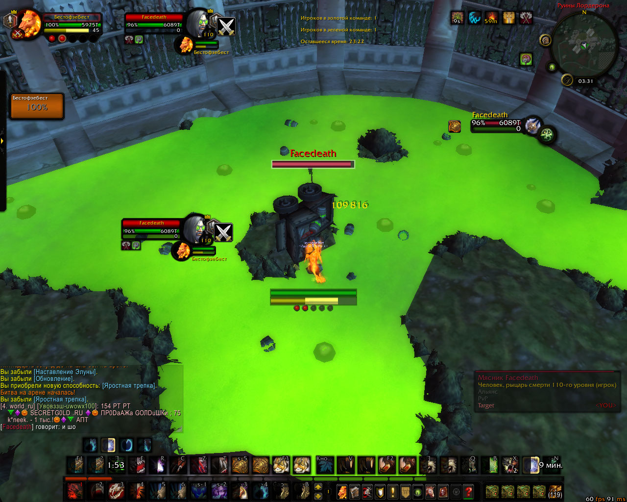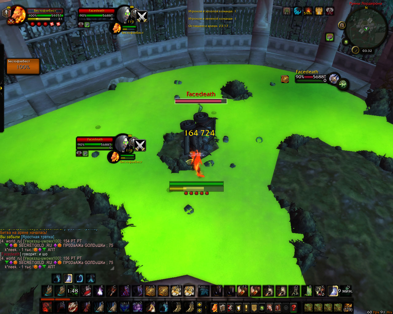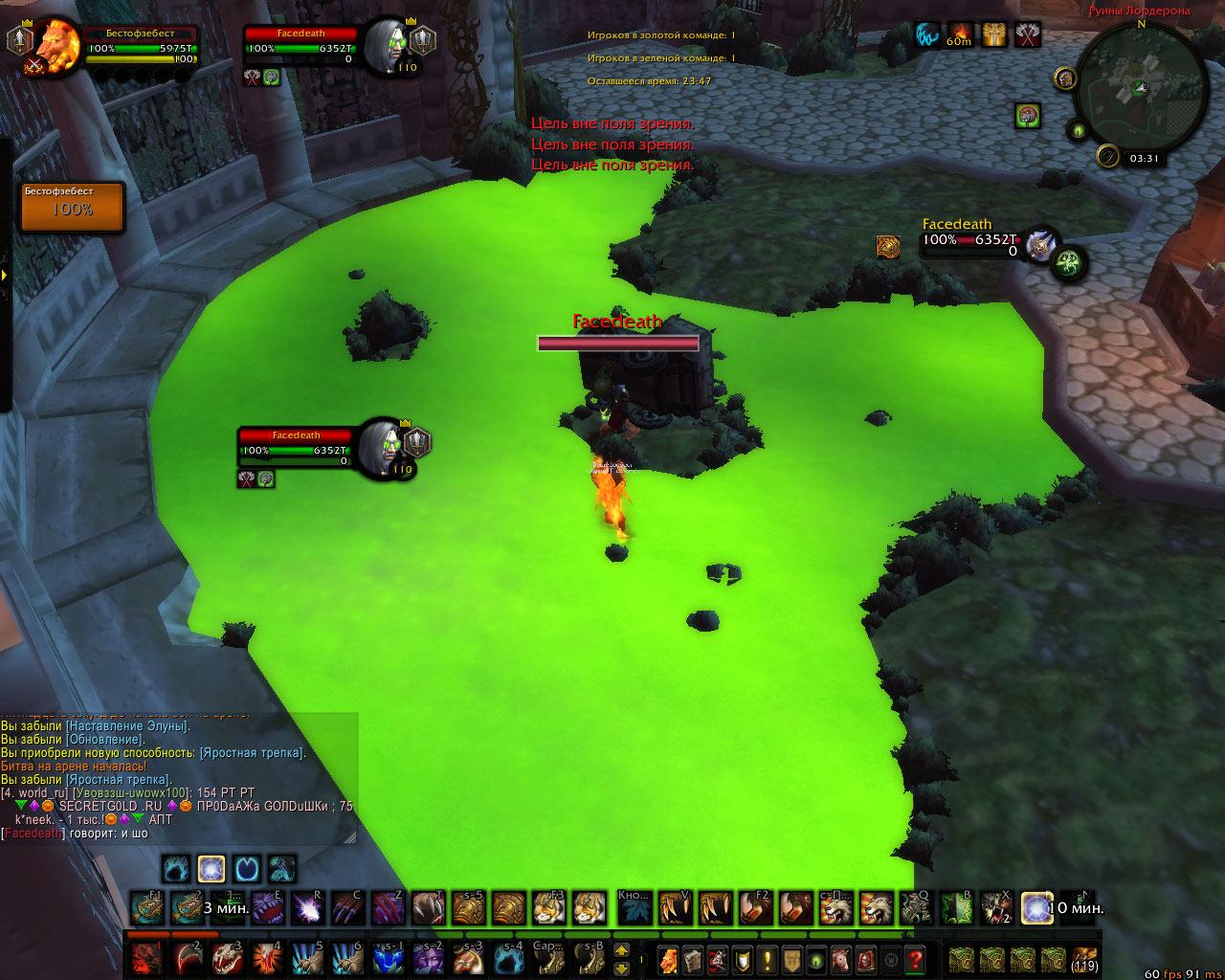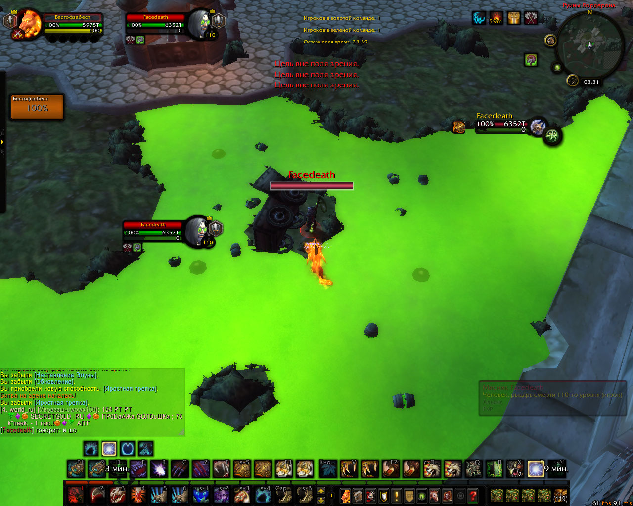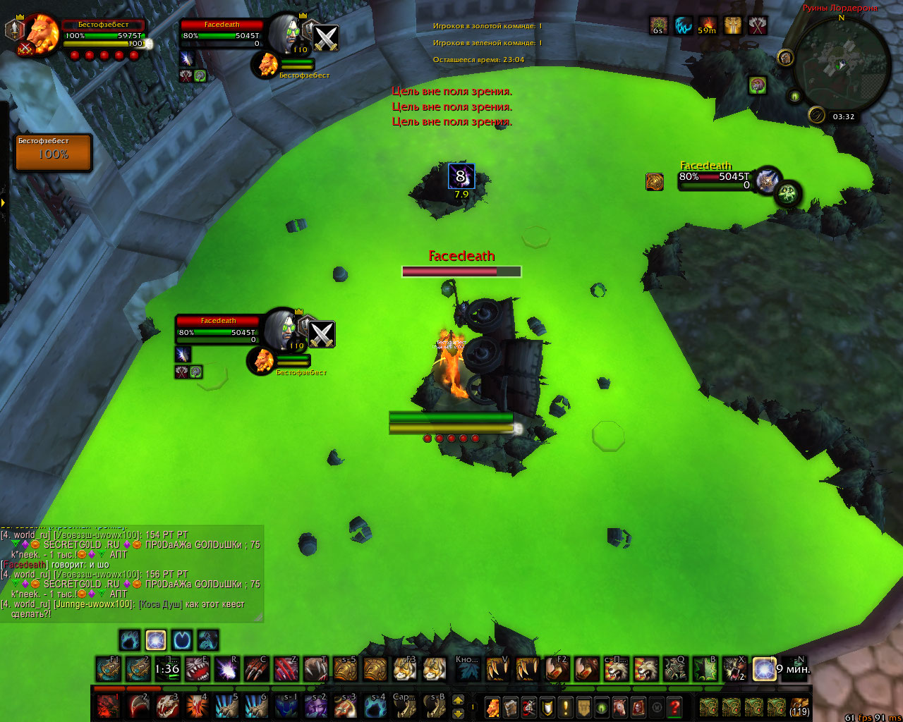 | Description | Текстура вагонетки на арене Руины Лордерона поломана, что позволяет игрокам заходить в "лос" от противников, тем самым получая преимущество на арене | ||||